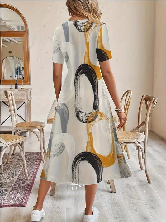 Adeline | Sukienka spódnicowa w kształcie litery A z nadrukiem i dekoltem w serek