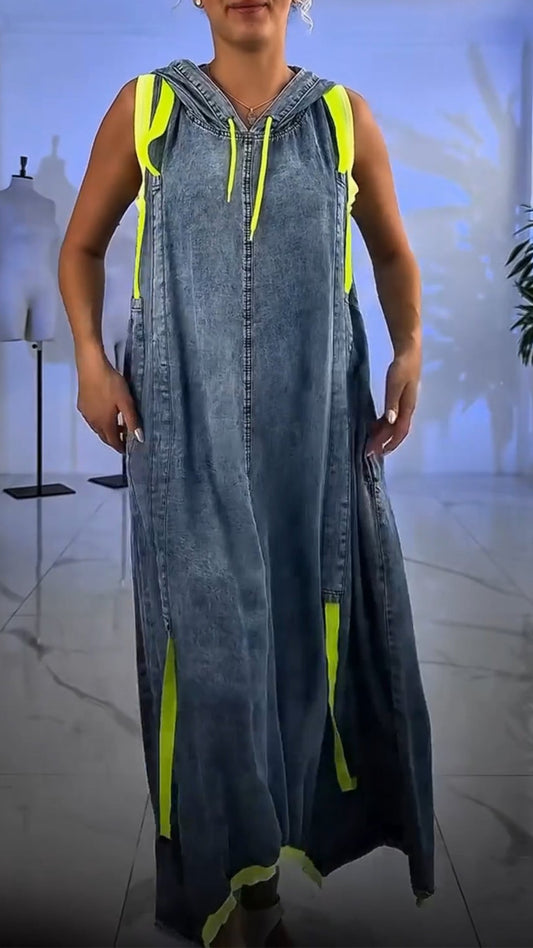 Damska sukienka z okrągłym dekoltem i łączeniem w kształcie kapelusza, casualowa i luźna