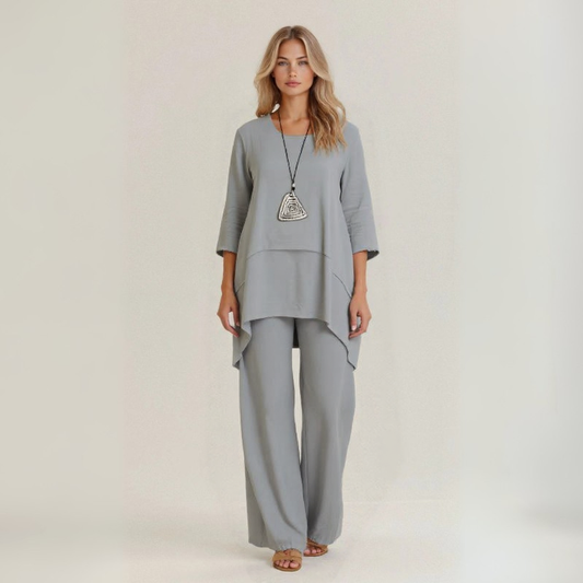 Elegancki, casualowy, dwuczęściowy komplet z nowoczesnym nadrukiem
