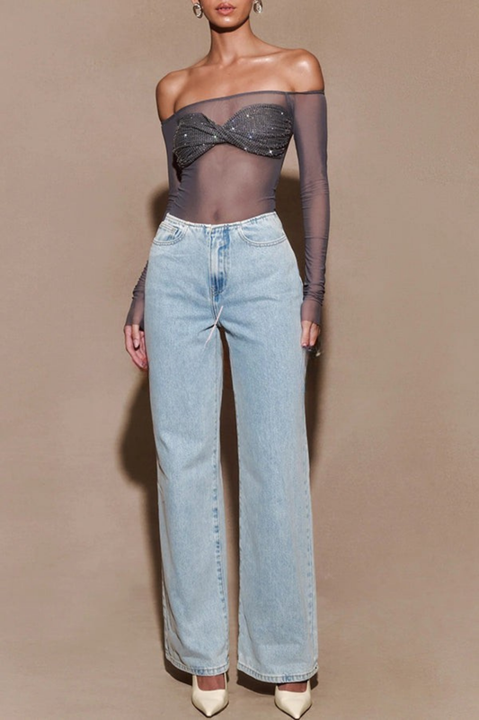 Garcelle – Siateczkowa Cekinowa Bluzka Bardot