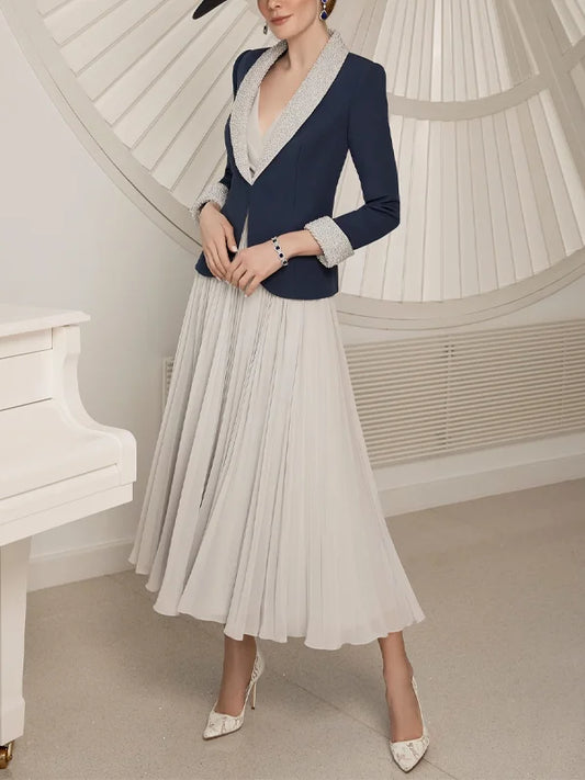 Garnitur Sukienka Marynarkowa w Kontrastowym Kolorze