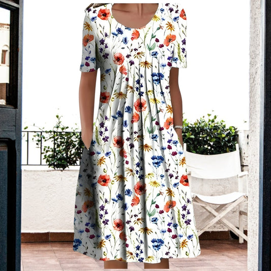 Amelia - Sukienka z okrągłym dekoltem i kwiatowym wzorem