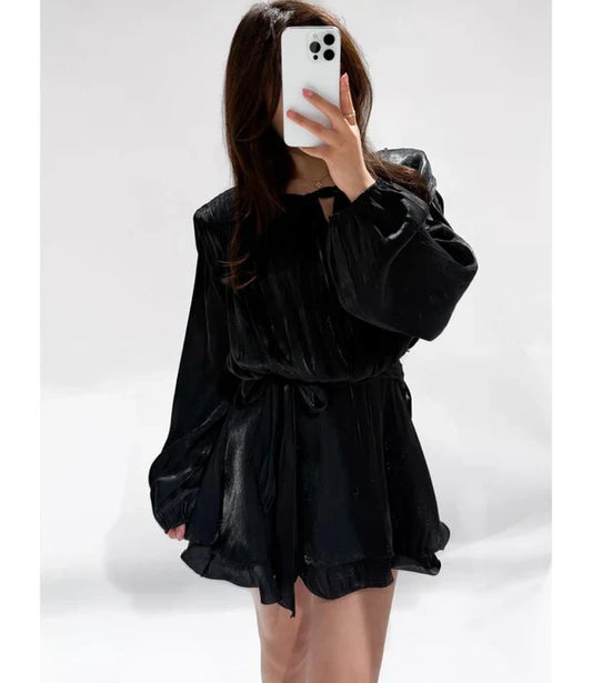 Sukienka kardigan z długim rękawem, jednokolorowa, z nieregularnym rozcięciem