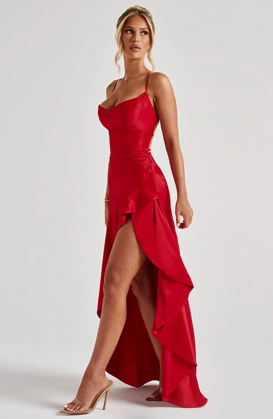Sukienka maxi Hannah Satin z dekoltem w stylu wodospadu