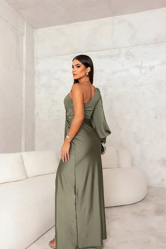 Sukienka Maxi z Dekoltem w Serek w Jednolitym Kolorze