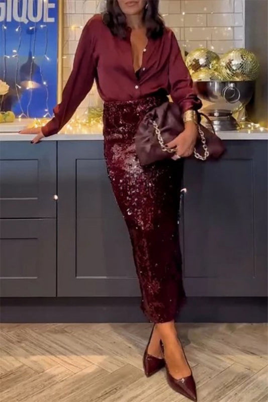 Świąteczny Nastrój – Cekinowa Spódnica Maxi Z Rozcięciem