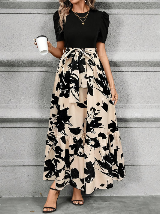 Rozelina / Wzorzysta Sukienka Maxi W Kształcie Litery A