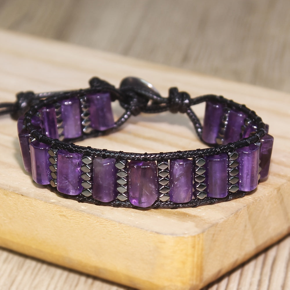 Bransoletka z naturalnego ametystu afrykańskiego o czystym, ręcznie tkanym wzorze podkreśla elegancję i duchową harmonię. Idealna na prezent lub codzienne stylizacje, wprowadza spokój i subtelny luksus.