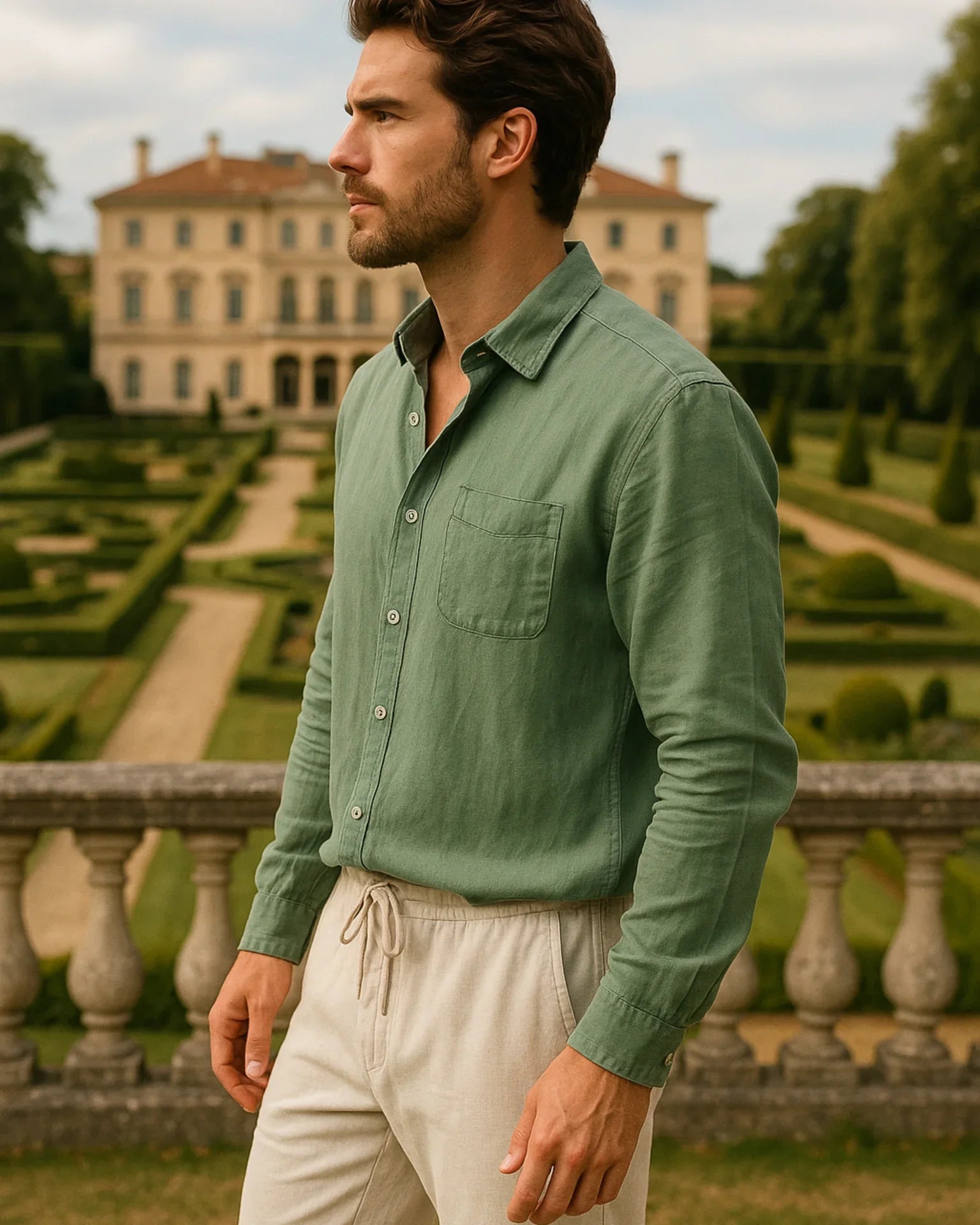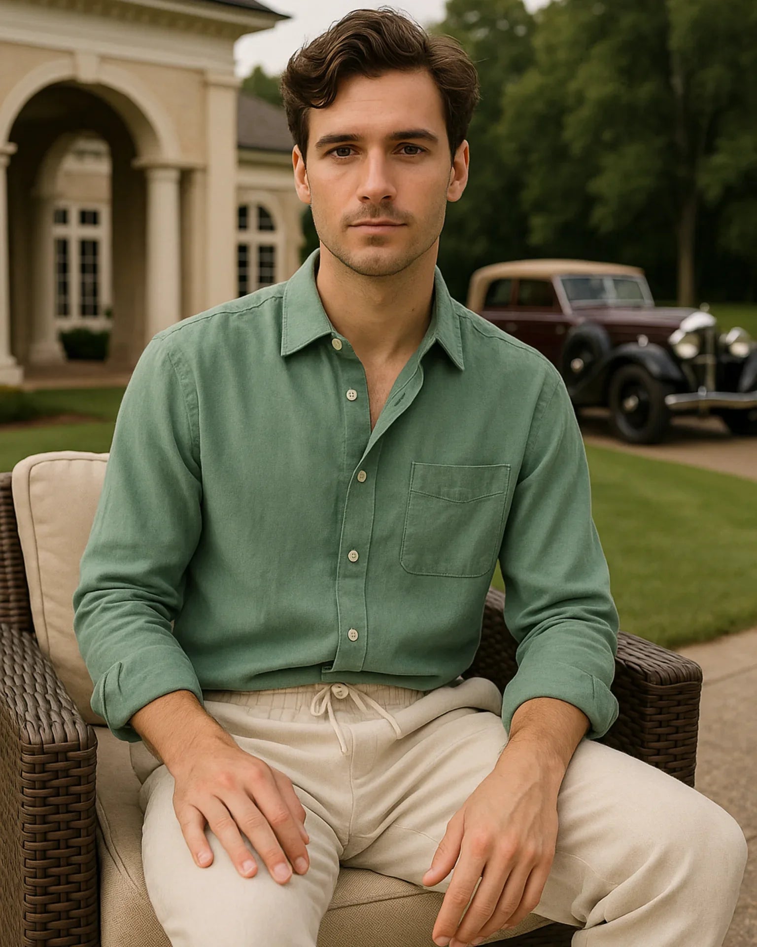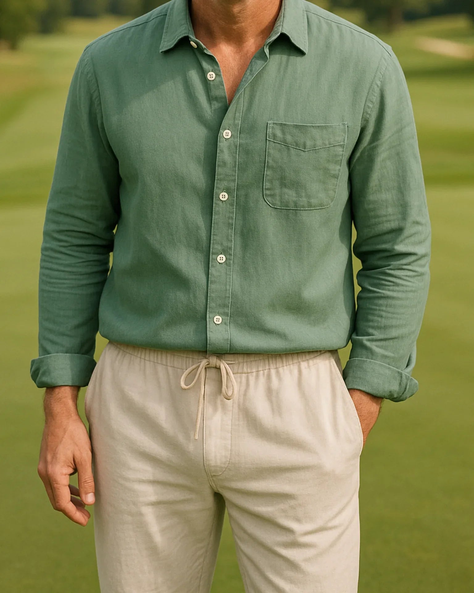 Ten 2-częściowy lniany zestaw — zielony/beżowy to definicja swobodnej elegancji. Zaprojektowany z myślą o ciepłych dniach i chłodnych wieczorach, składa się z lekkiej koszuli z długim rękawem oraz dopasowanych spodni ze ściągaczem — wykonanych z oddychającego, miękkiego w dotyku materiału, który porusza się wraz z Tobą. Doskonale skrojony dla nowoczesnej wszechstronności, sprawdzi się zarówno podczas spaceru po mieście, jak i weekendowego wypadu.