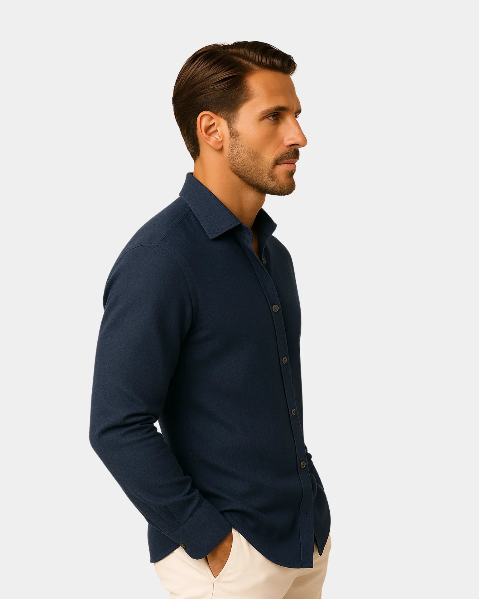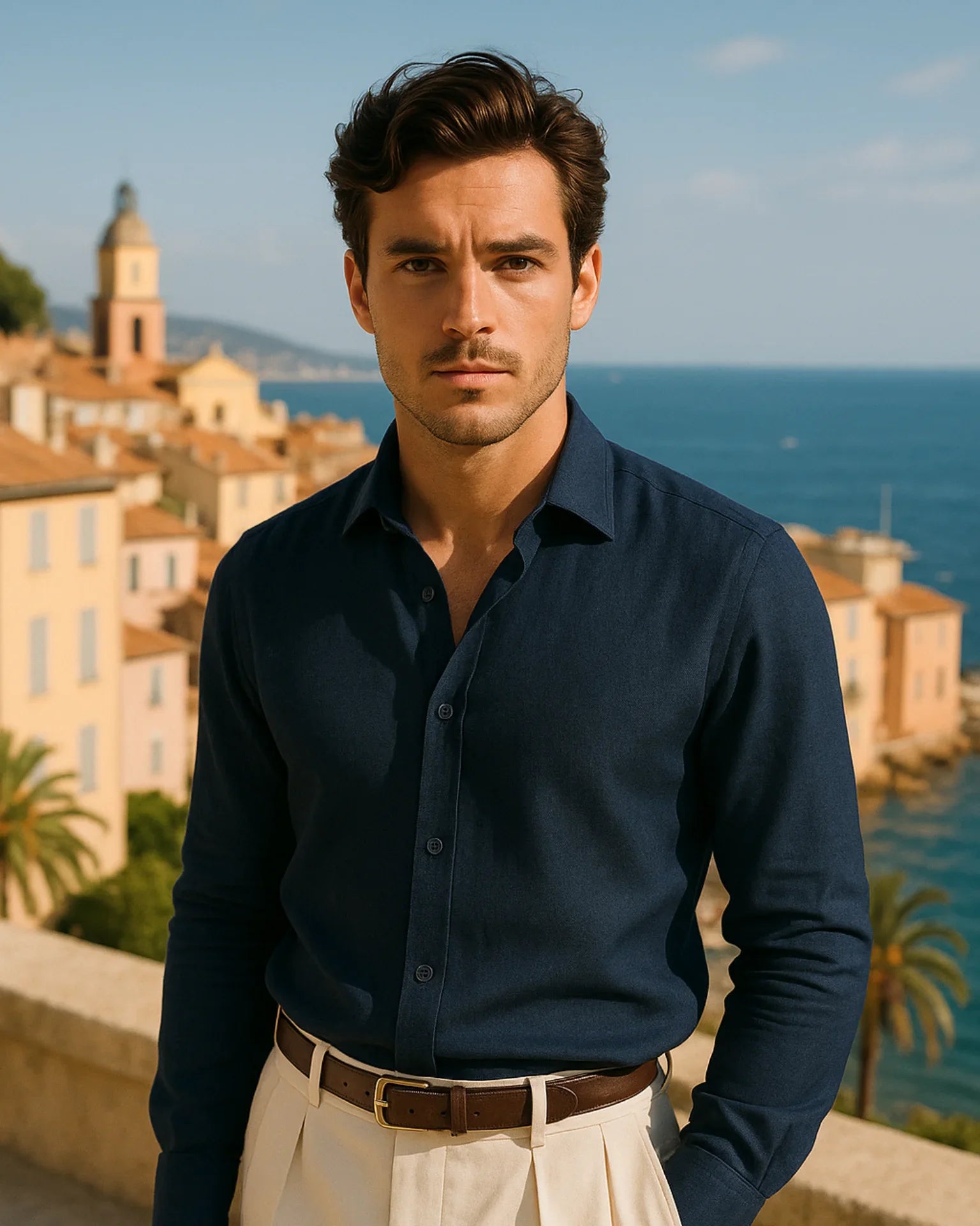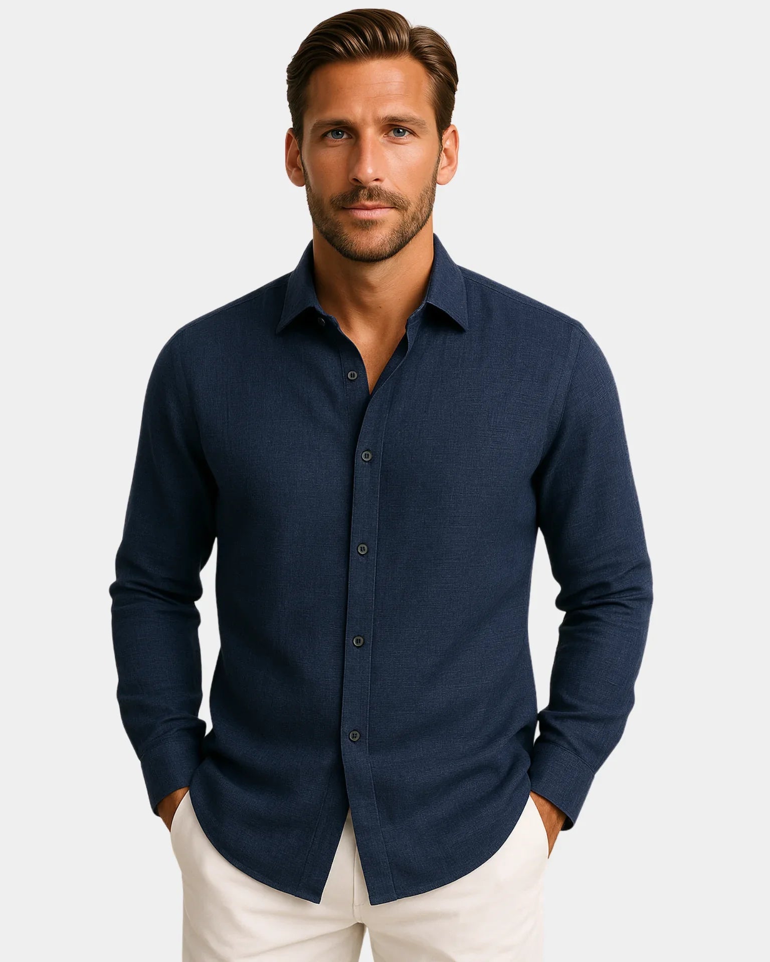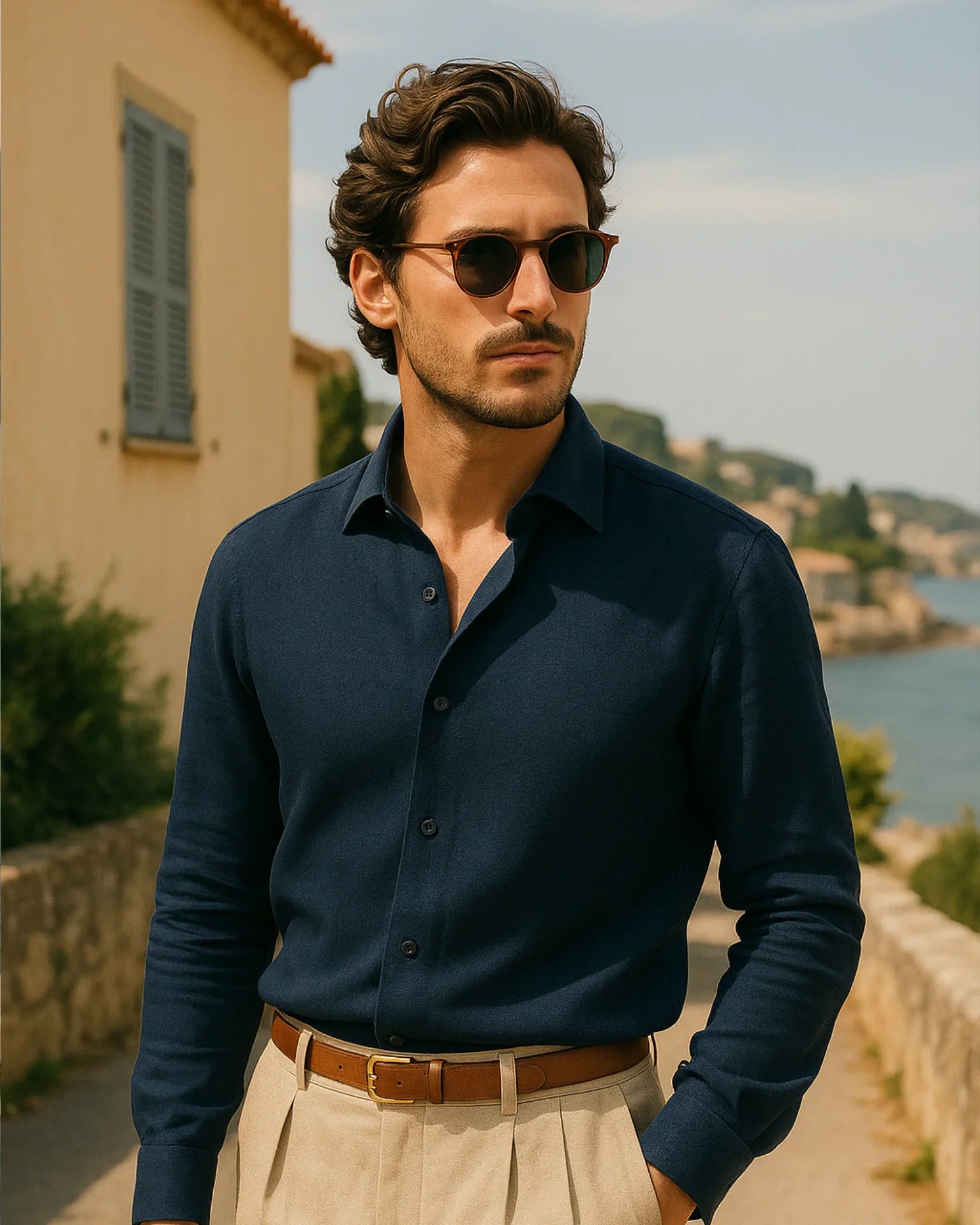 Zaprojektowana z eleganckim kołnierzykiem typu spread, wzmocnionymi szwami i guzikami z naturalnej muszli, koszula Aleksander – lniana koszula łączy w sobie doskonałe proporcje między wyrazistą formą a swobodnym luksusem — niezbędny element każdej wyszukanej garderoby.