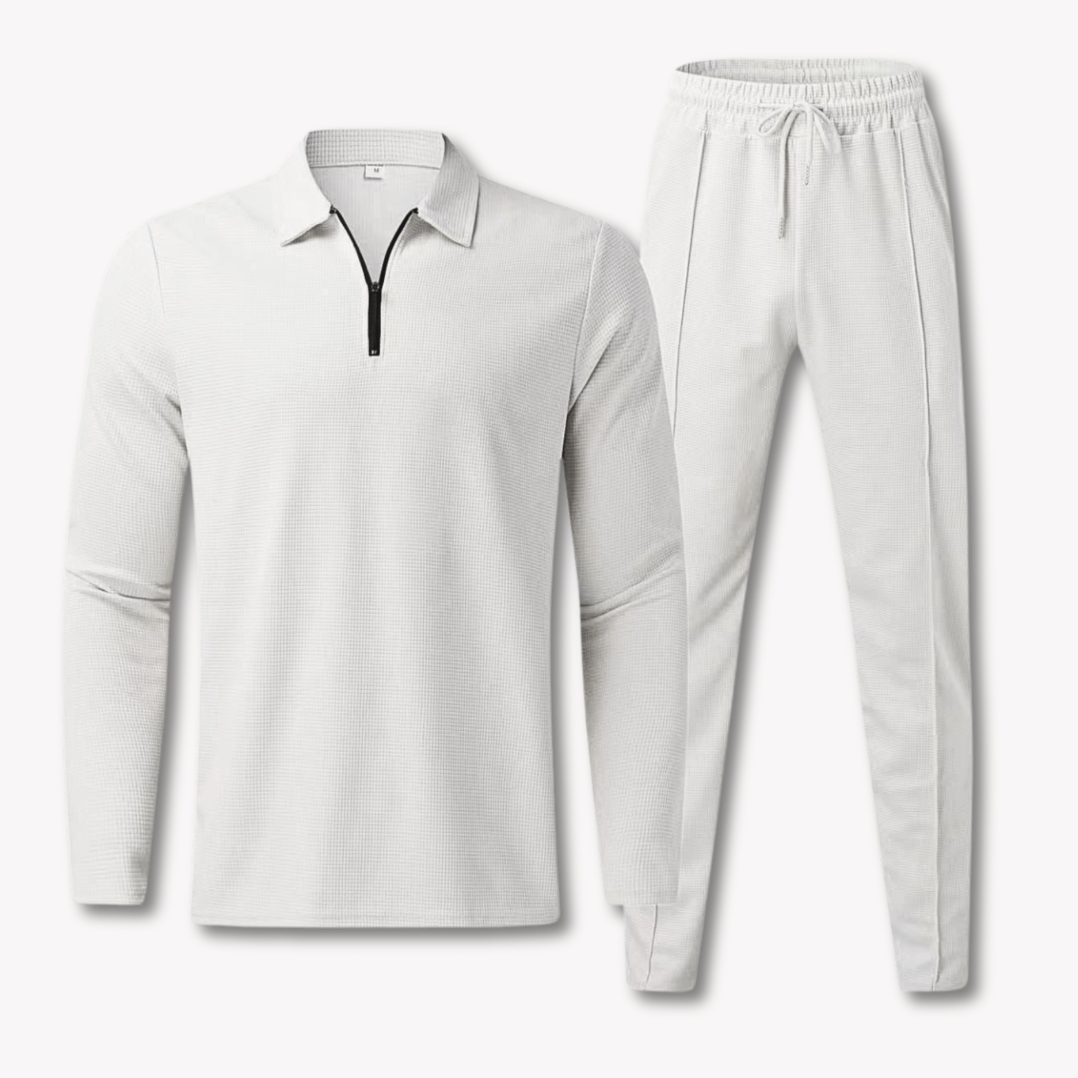 Podnieś swój look na wyższy poziom dzięki zestawowi Antonio Performance Set – wyrafinowanemu połączeniu stylu inspirowanego sportem i codziennej wygody. Dzięki minimalistycznemu krojowi, teksturowanej tkaninie i eleganckiemu dekoltowi z suwakiem 1/4, ten dwuczęściowy komplet został zaprojektowany z myślą o ruchu i idealnym noszeniu w czasie wolnym. Niezależnie od tego, czy idziesz na kawę, czy relaksujesz się w domu, zapewni Ci on poczucie świeżości i komfortu.