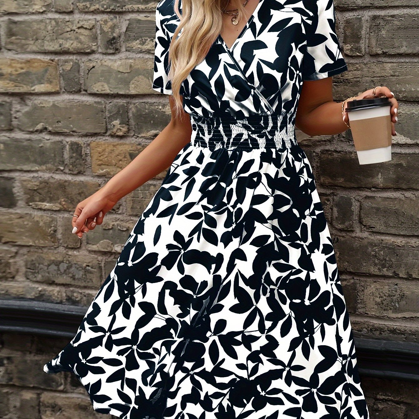 Sukienka Apolonia to elegancka propozycja na lato, łącząca motyw roślinny z luźnym krojem i krótkimi rękawami. Dekolt V dodaje kobiecego uroku, a lekko marszczona góra zapewnia wygodne dopasowanie do sylwetki.