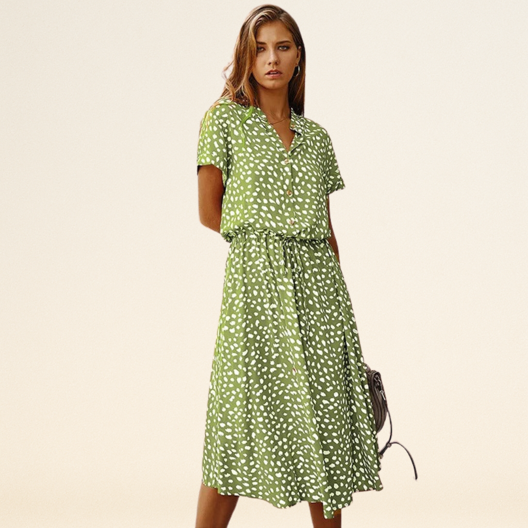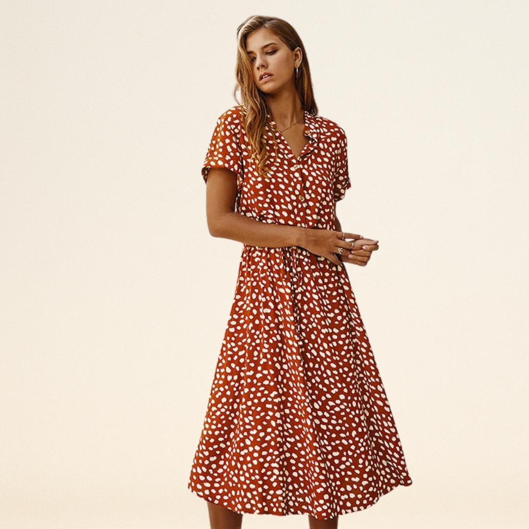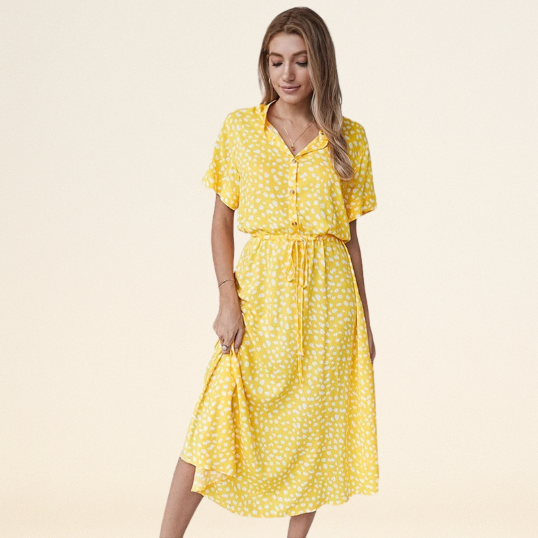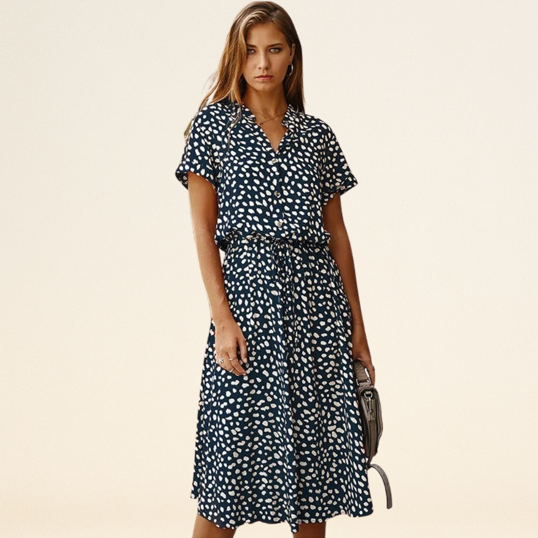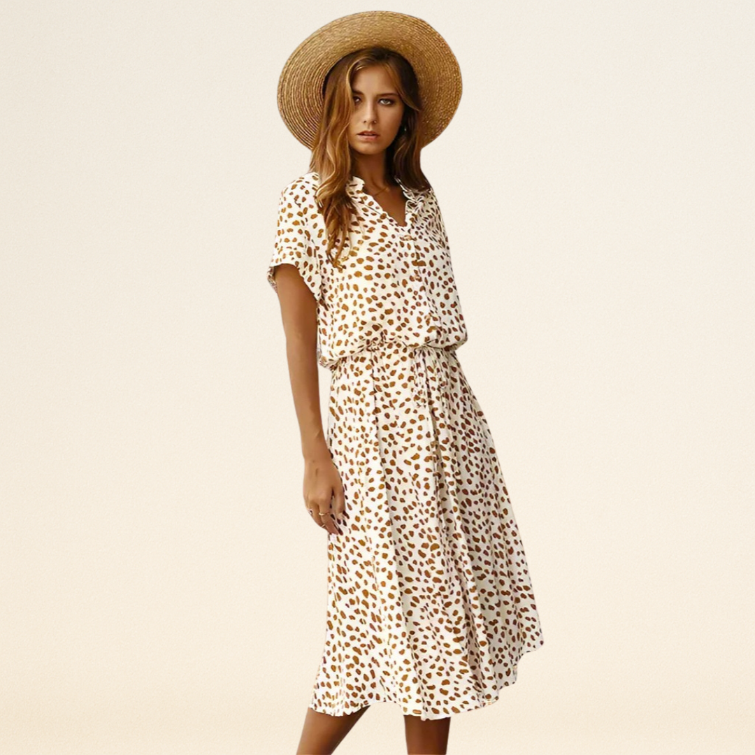 Poczuj słoneczną pogodę z letnią sukienką Ayesha z nadrukiem , zaprojektowaną tak, aby wyglądać stylowo i czuć się komfortowo przez cały dzień. Idealna na niezobowiązujące wyjścia lub relaksujące wakacje.
