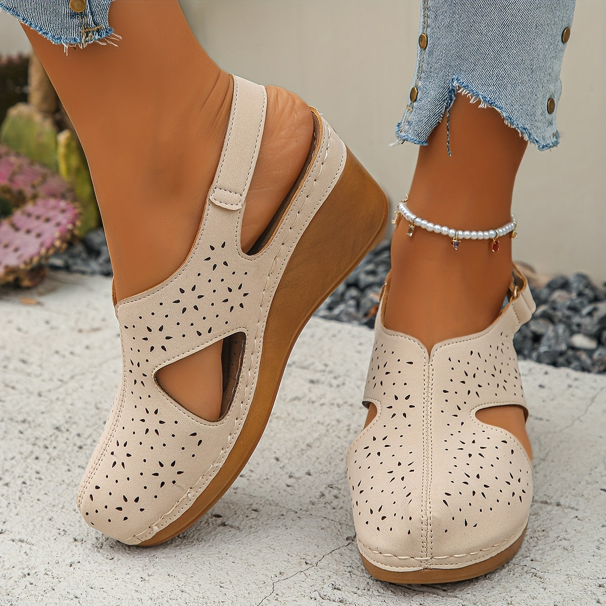 Belezza to beżowe sandały na koturnie z subtelnymi perforacjami, które dodają lekkości i elegancji. Regulowany pasek zapewnia idealne dopasowanie do stopy, a oddychająca konstrukcja dba o komfort w upalne dni. Dzięki stabilnej platformie można je nosić przez wiele godzin bez zmęczenia. Sprawdzą się zarówno w casualowych, jak i eleganckich stylizacjach.