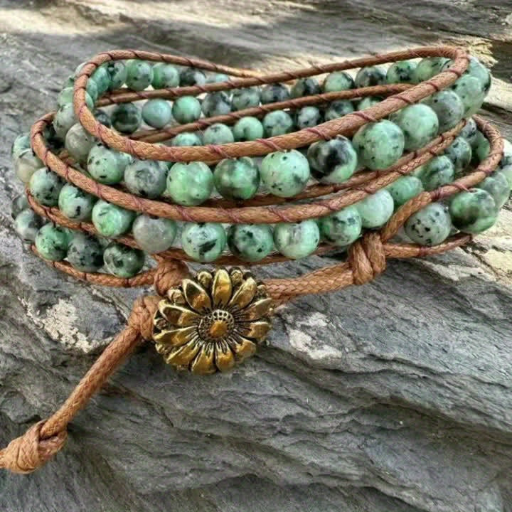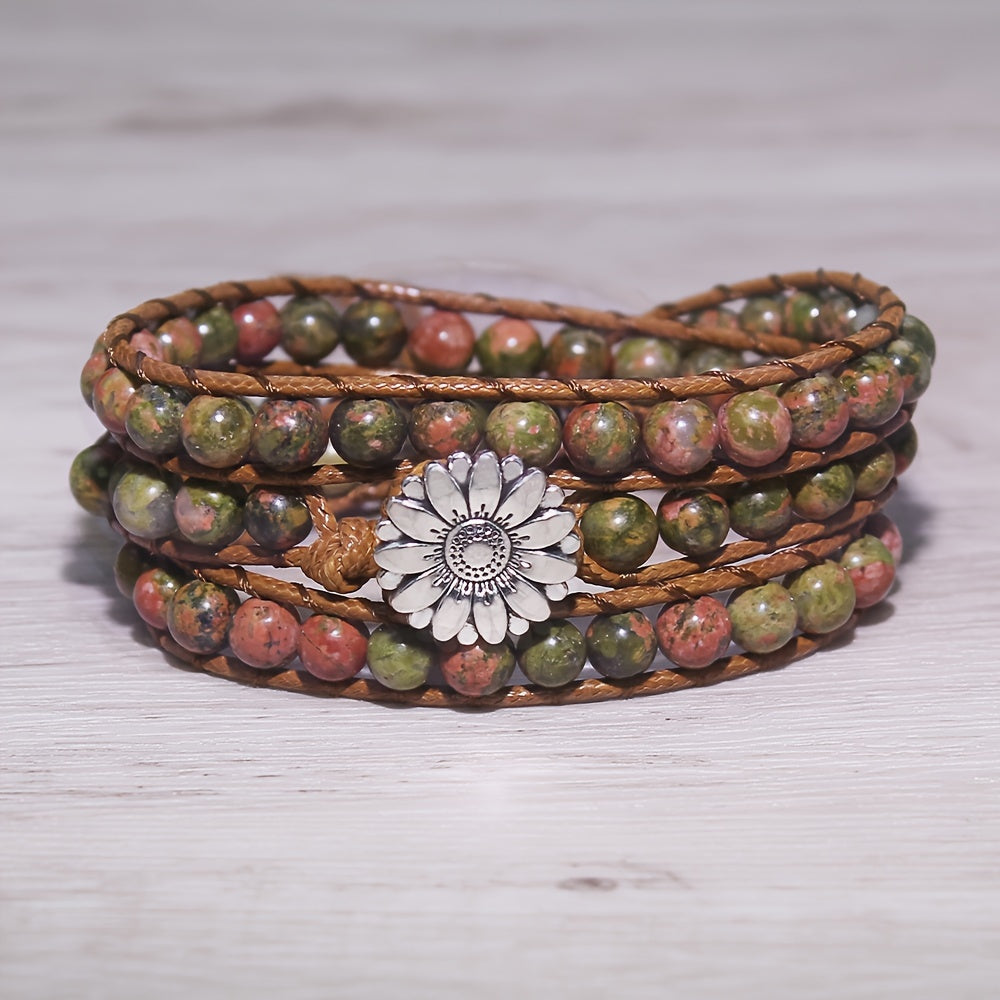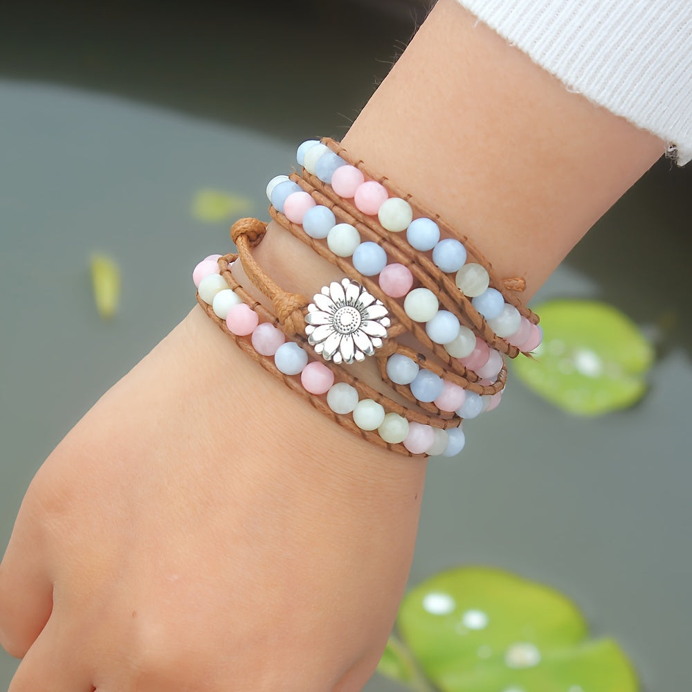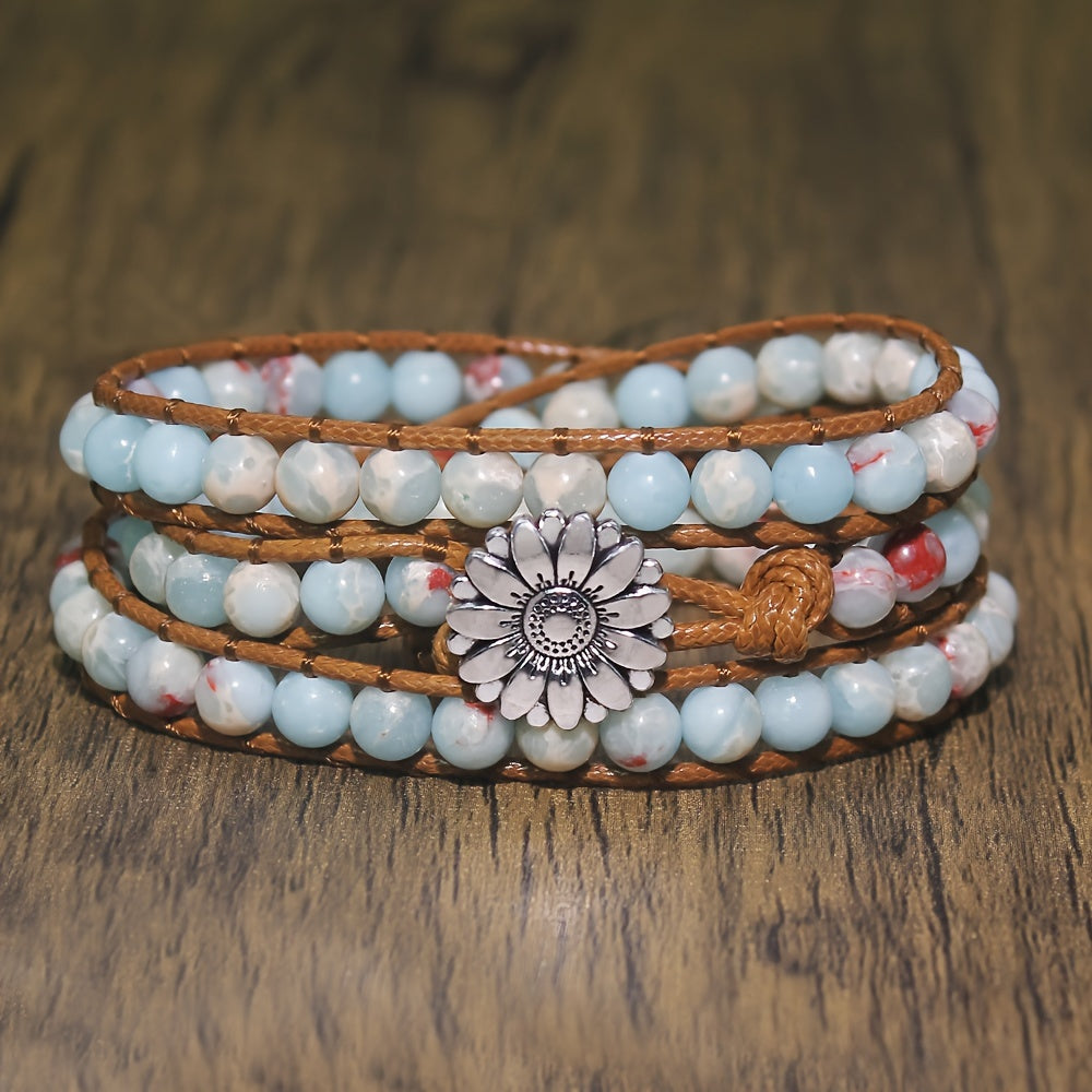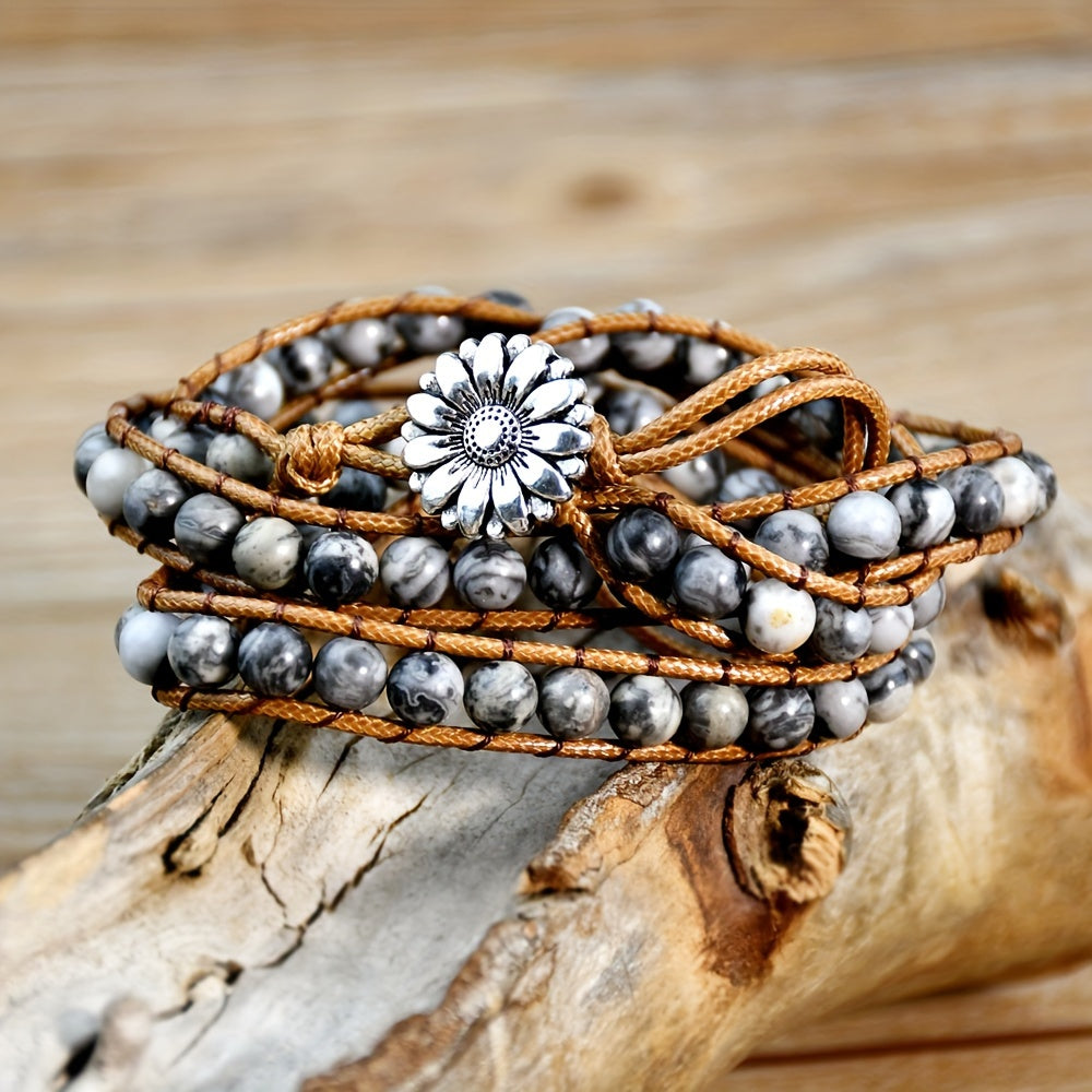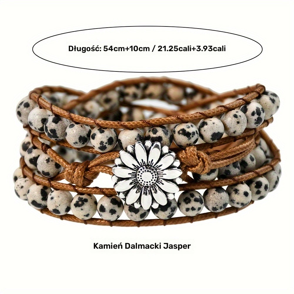 Ręcznie tkana bransoletka z naturalnego jaspisu w trzech warstwach nadaje wyjątkowy efekt boho. Regulowana konstrukcja sprawia, że łatwo dopasowuje się do nadgarstka. Idealna na letnie stylizacje i świąteczne okazje.