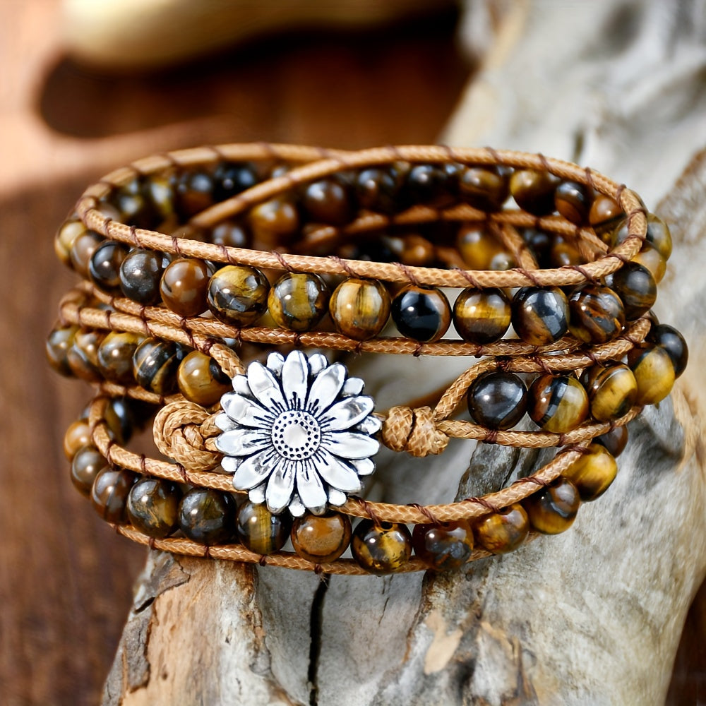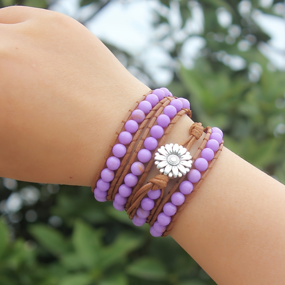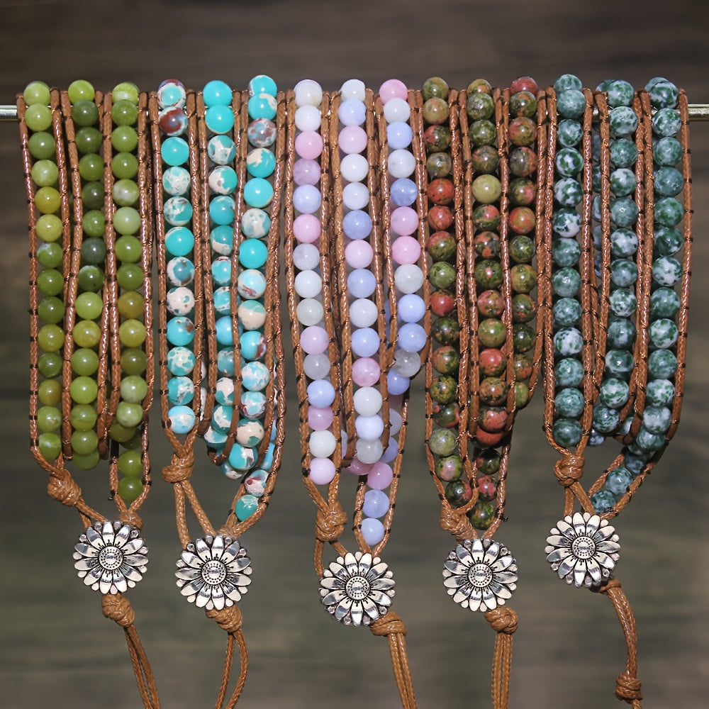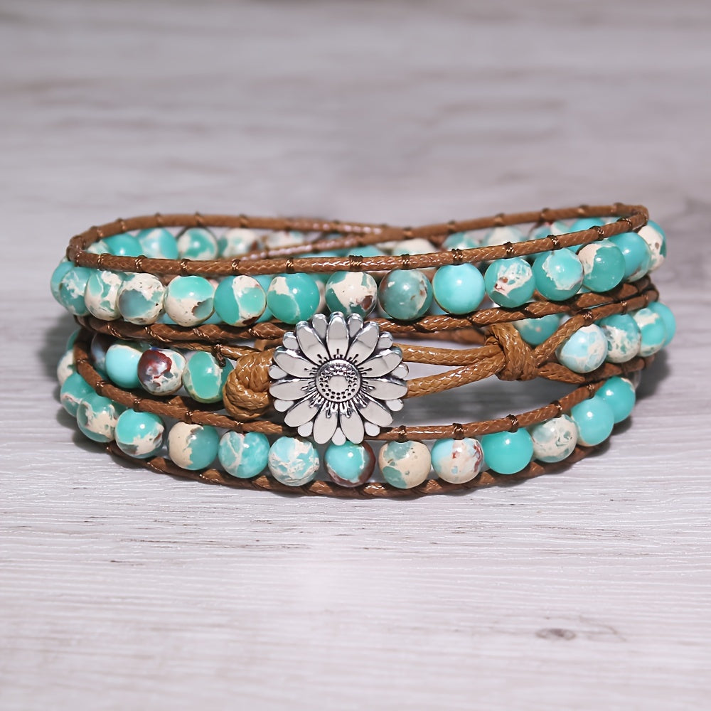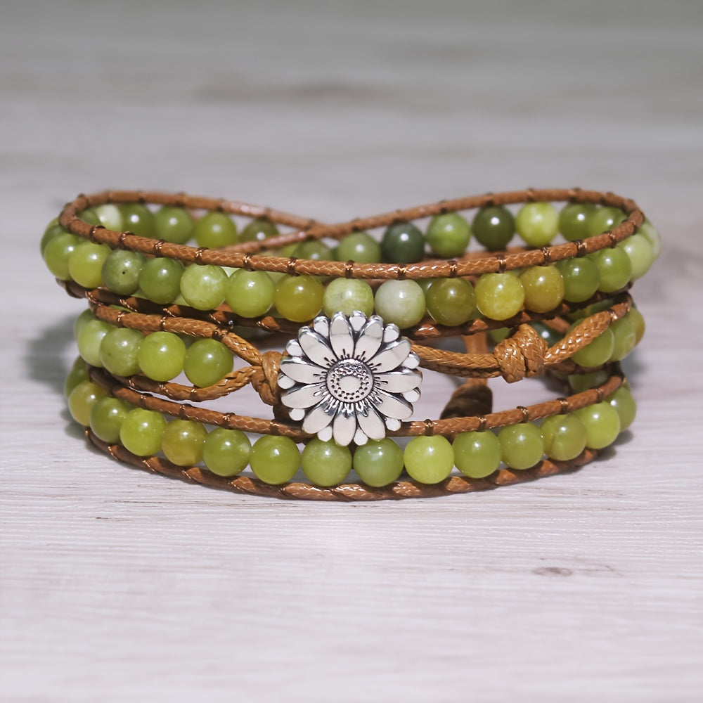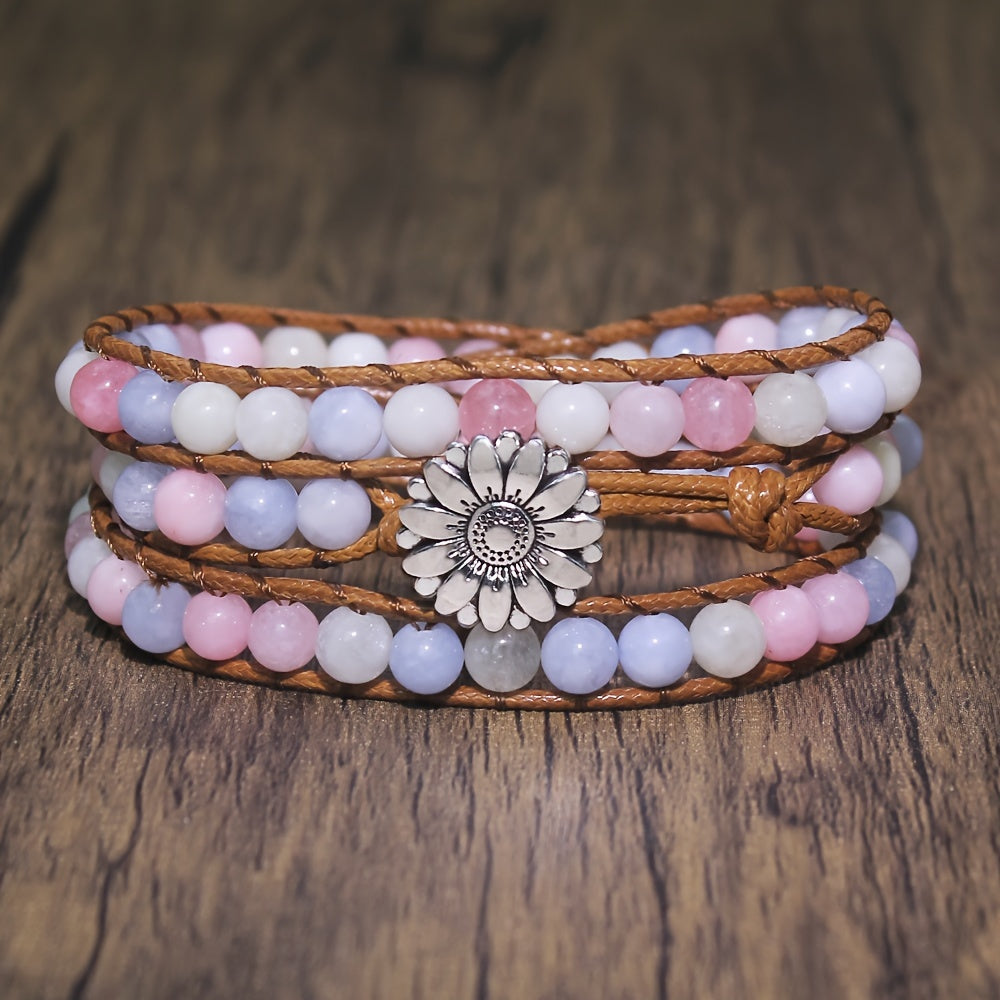 Ręcznie tkana bransoletka z naturalnego jaspisu w trzech warstwach nadaje wyjątkowy efekt boho. Regulowana konstrukcja sprawia, że łatwo dopasowuje się do nadgarstka. Idealna na letnie stylizacje i świąteczne okazje.