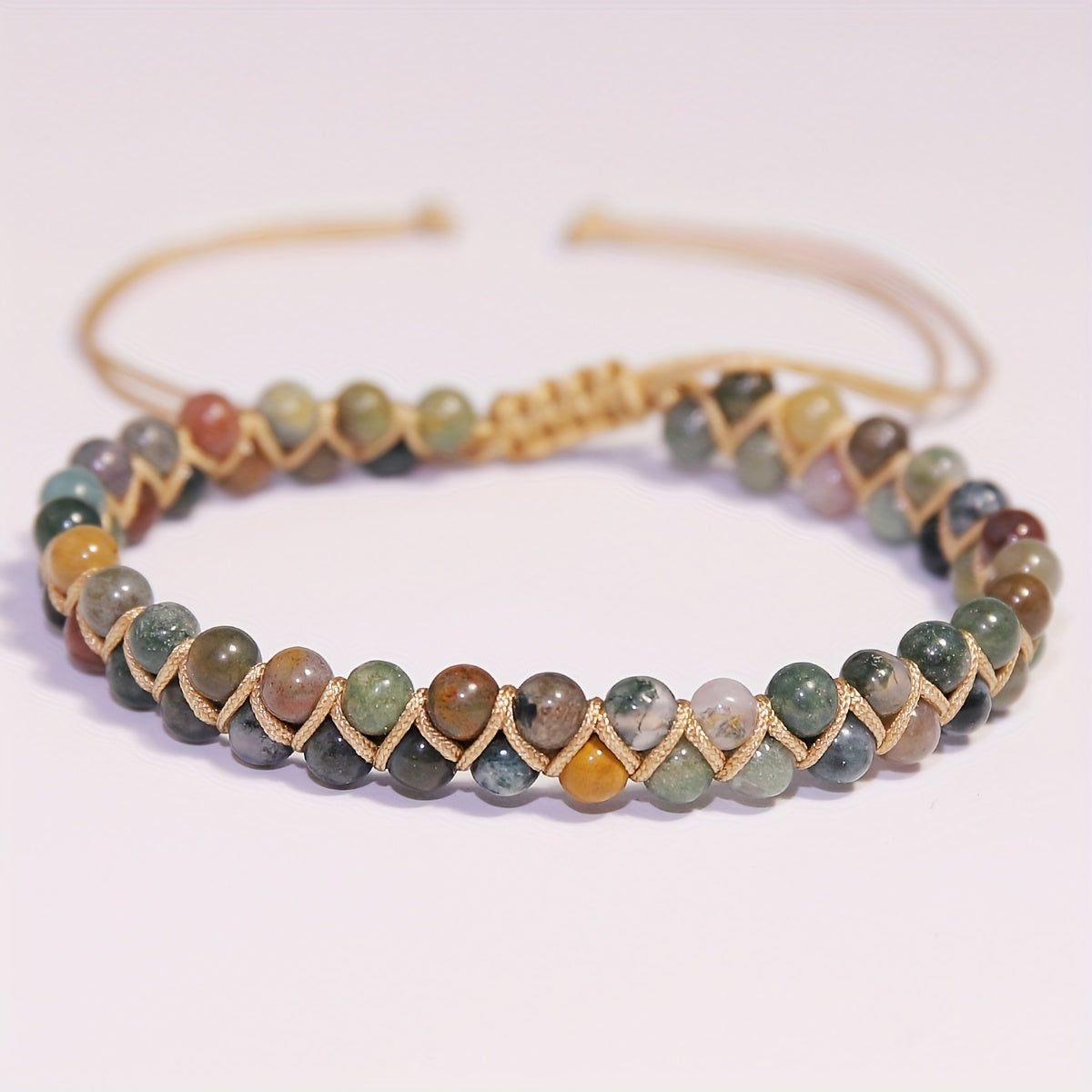 Bransoletka z kolorowej indyjskiej agaty przyciąga wzrok i symbolizuje więź z naturą. Ręcznie wykonana w stylu boho, idealna na prezent i codzienne noszenie. Dodaje uroku i ciepła każdej stylizacji.