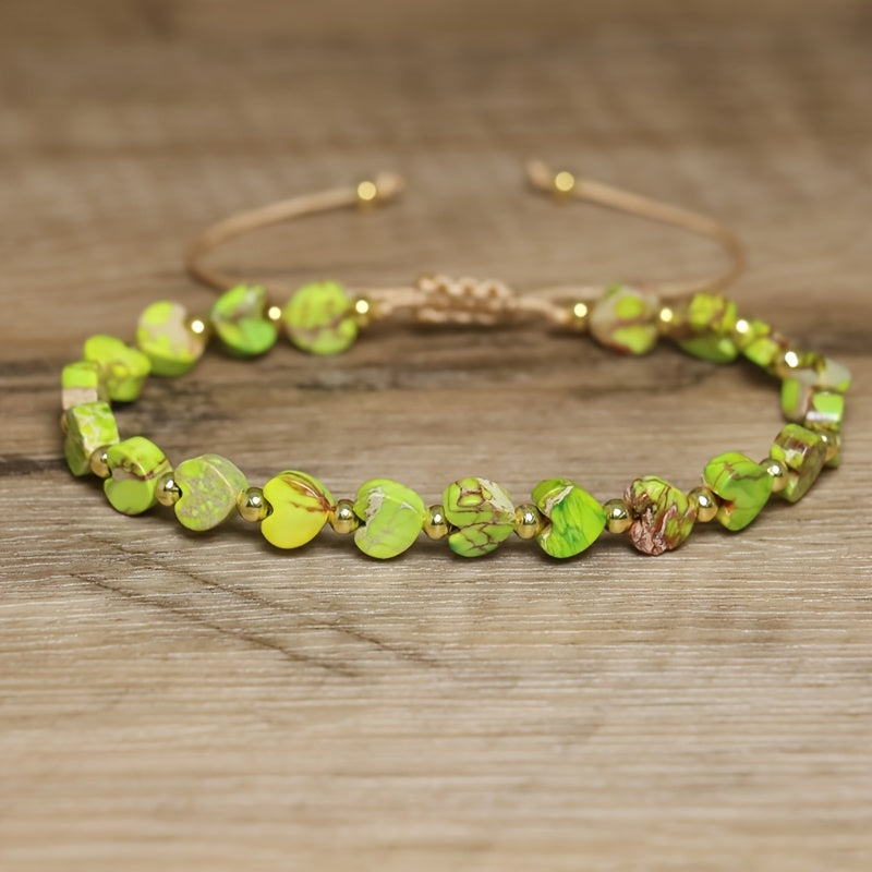 Ręcznie wykonana bransoletka z naturalnych kamieni szlachetnych w stylu boho to ponadczasowy dodatek na każdą okazję. Regulowany rozmiar i brak powłoki gwarantują komfort i trwałość. Doskonała na codzienne noszenie lub jako wyjątkowy prezent.