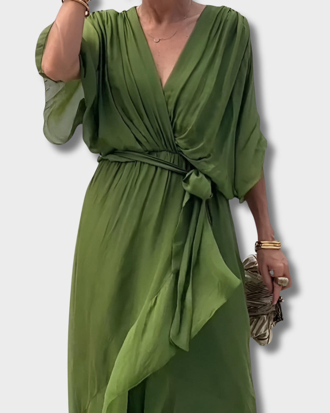 • Sylwetka modelująca sylwetkę – dekolt w serek i elegancki krój podkreślają sylwetkę i wyrafinowanie.