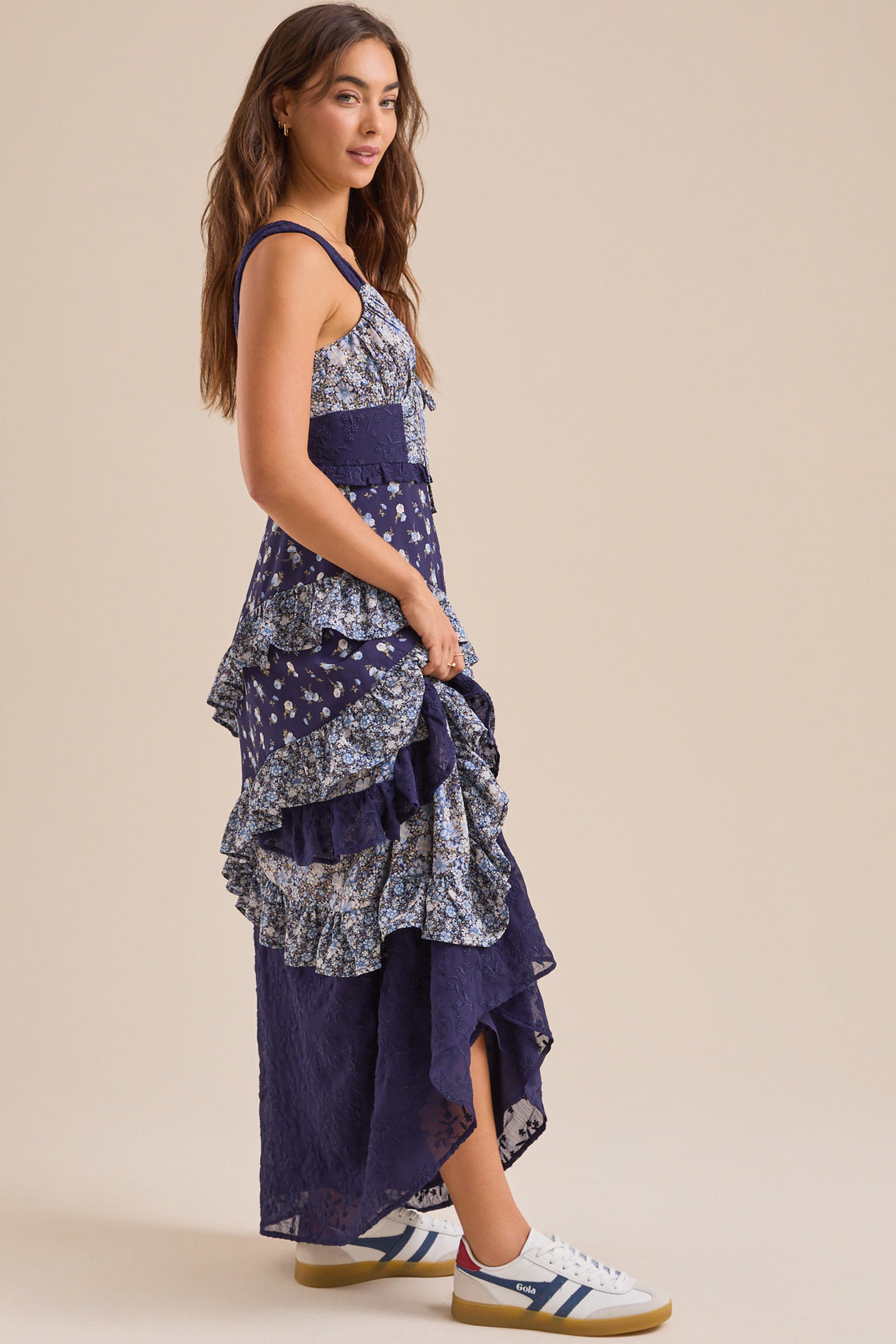 / Swobodna, patchworkowa sukienka maxi w kwiaty