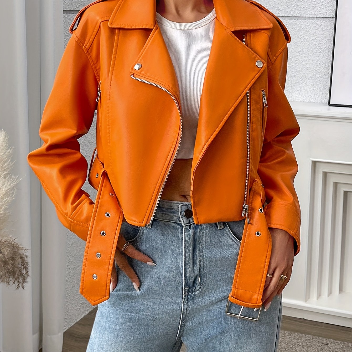 Celina – Luźna Damska Kurtka Ze Skóry Pu Z Paskiem