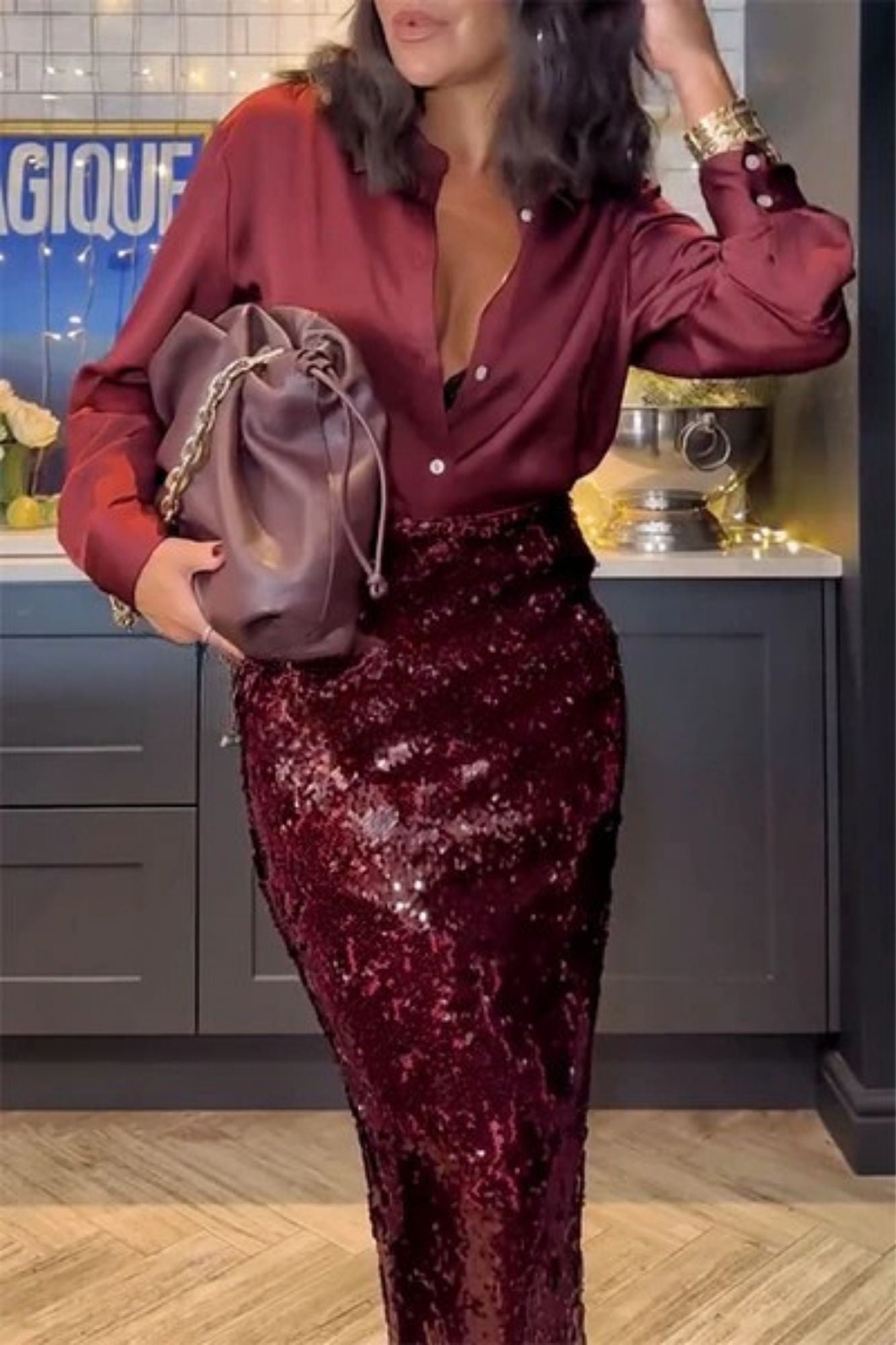 Świąteczny Nastrój – Satynowa Koszula Z Długim Rękawem