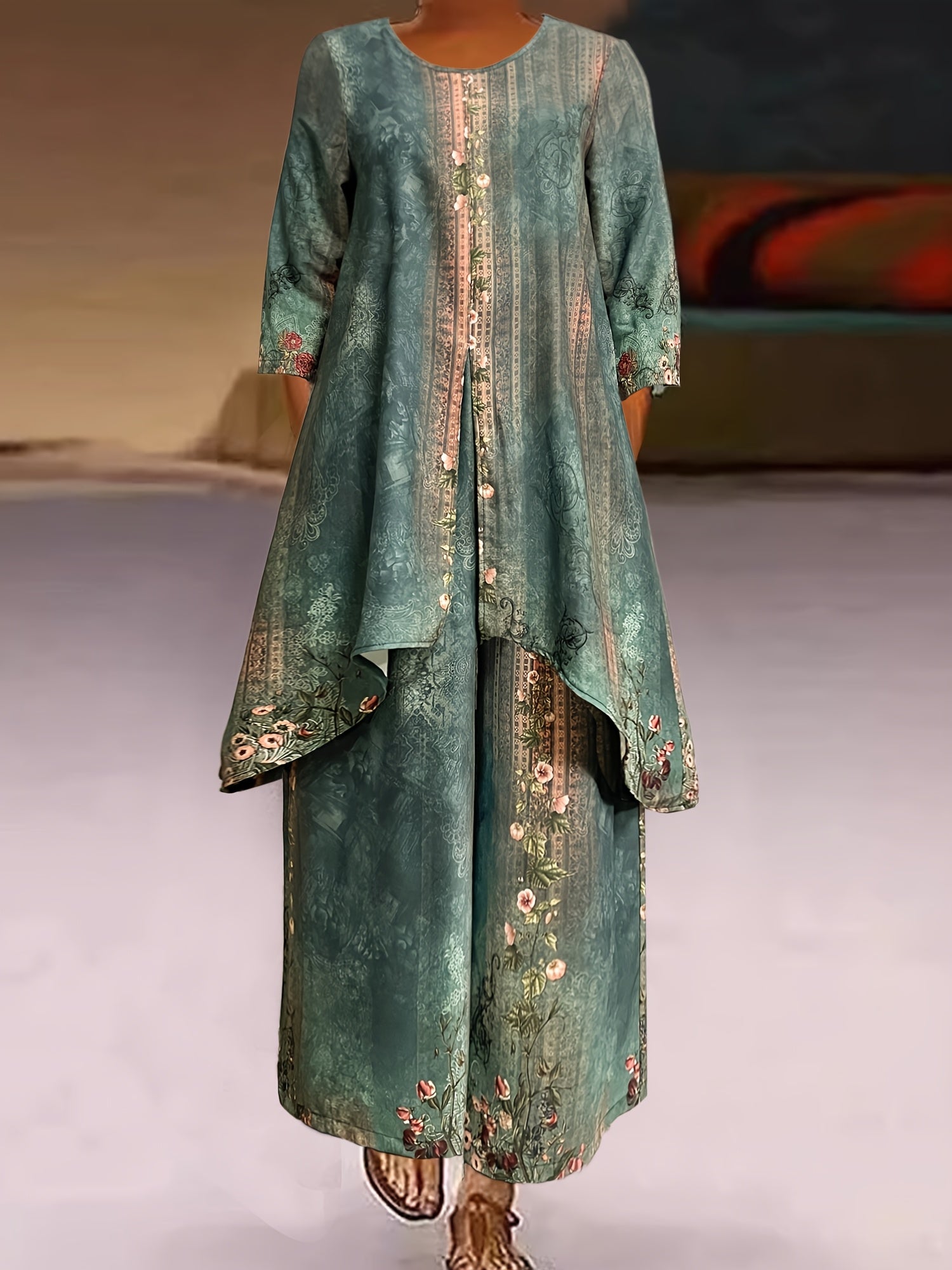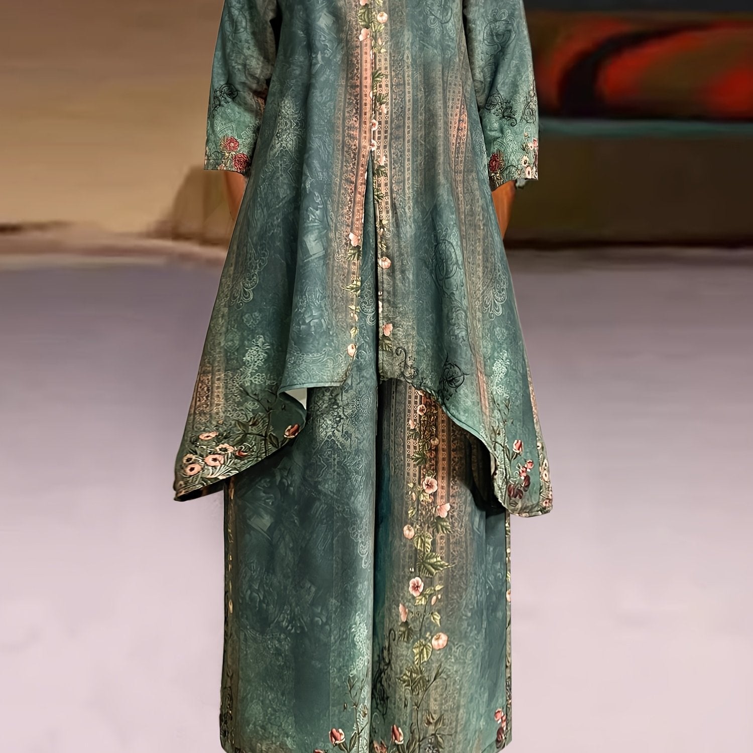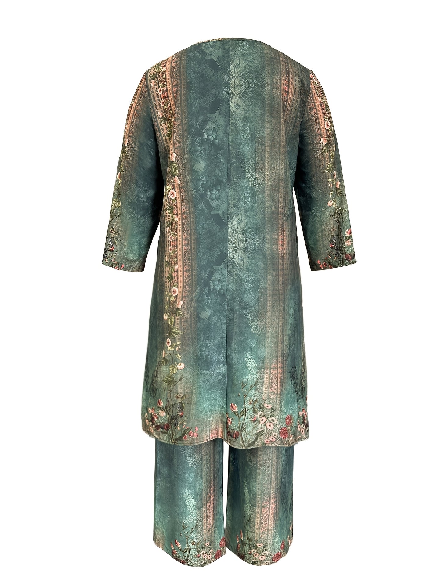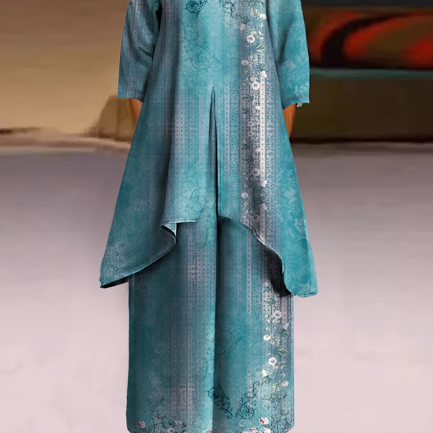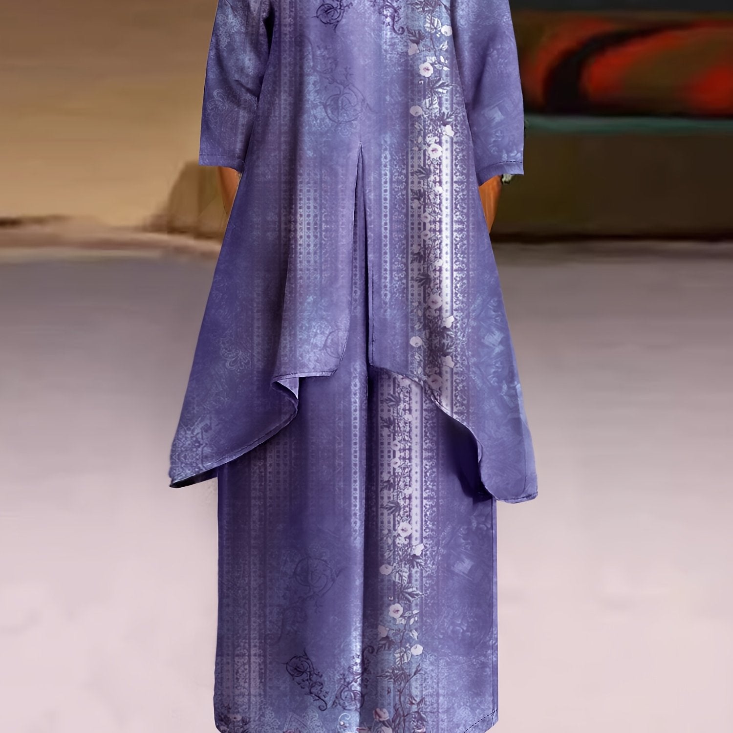 Oversize’owa sukienka-tunika z nadrukiem i rozcięciem, idealna na wiosnę i jesień. Okrągły dekolt i praktyczne kieszenie dodają jej funkcjonalności. Nierozciągliwy materiał sprawia, że prezentuje się elegancko i schludnie.