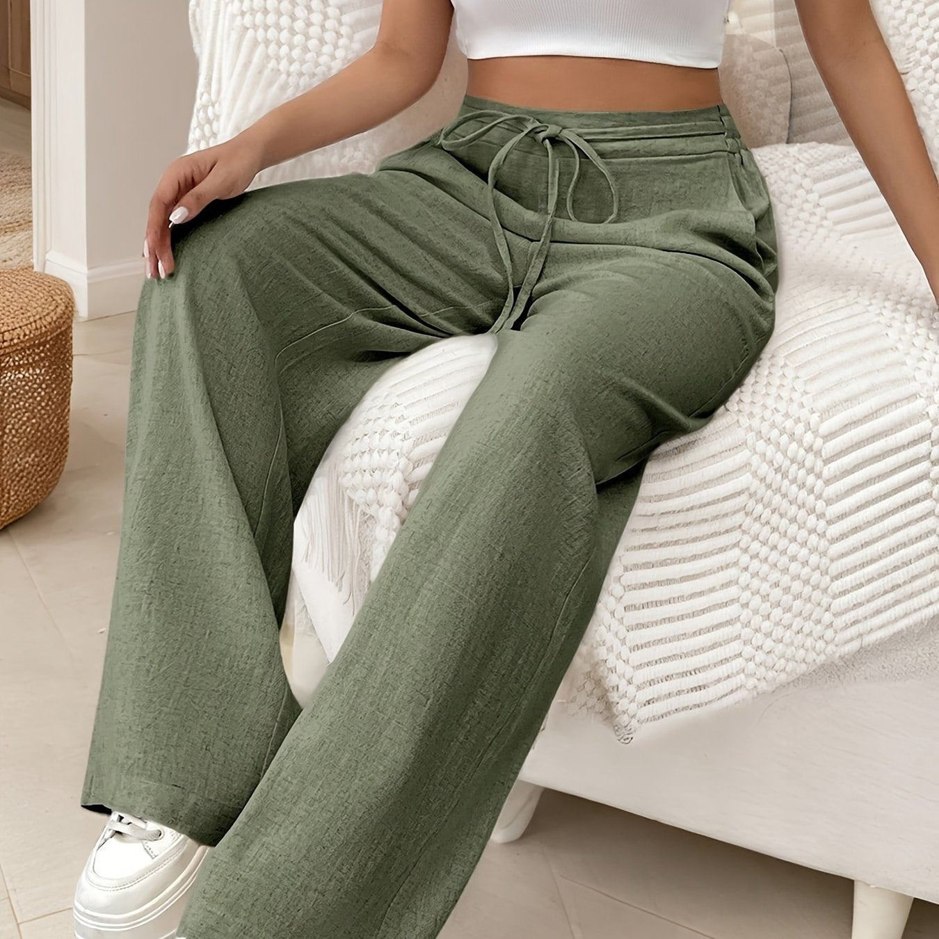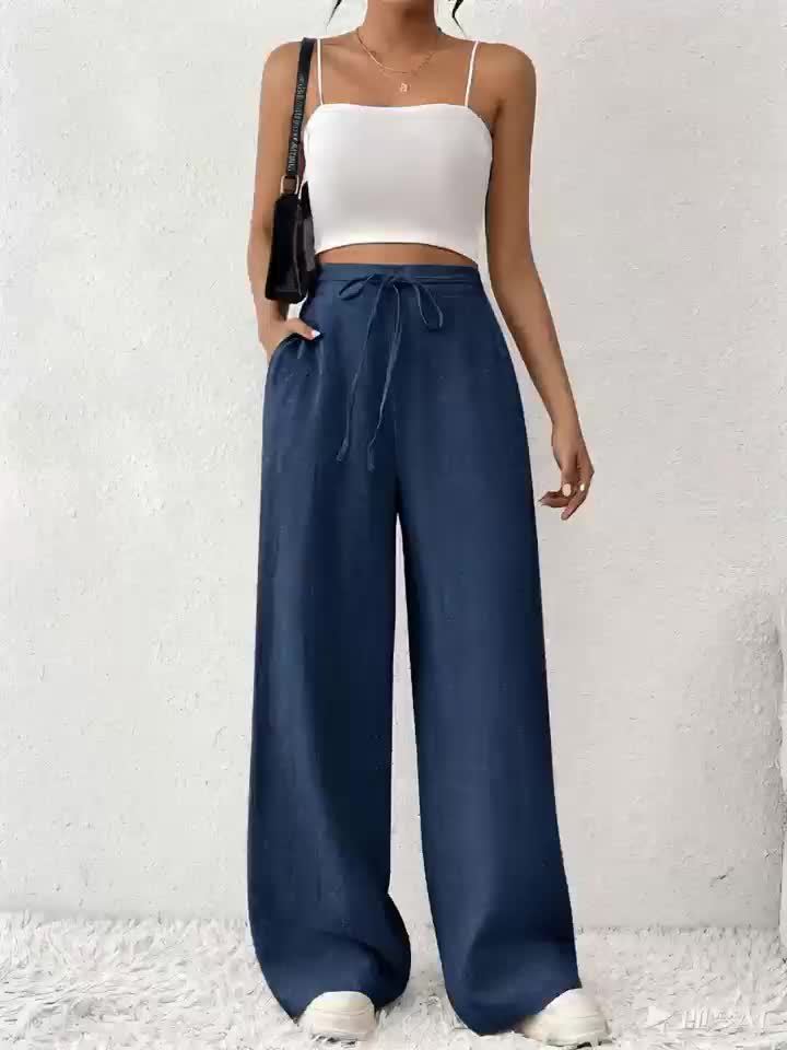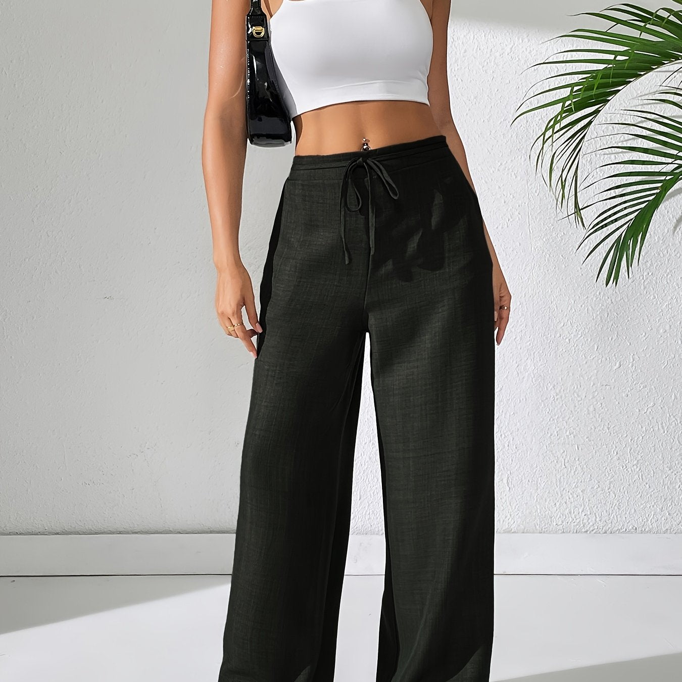 Sznurowa to czarne spodnie z szerokimi nogawkami i regulowanym sznurkiem w pasie. Wykonane z lekkiej mieszanki poliestru, są wygodne i łatwe do prania. Wysoki stan oraz luźny krój gwarantują komfort i swobodę ruchów przez cały dzień. Idealne zarówno na co dzień, jak i na wyjścia w casualowym stylu.