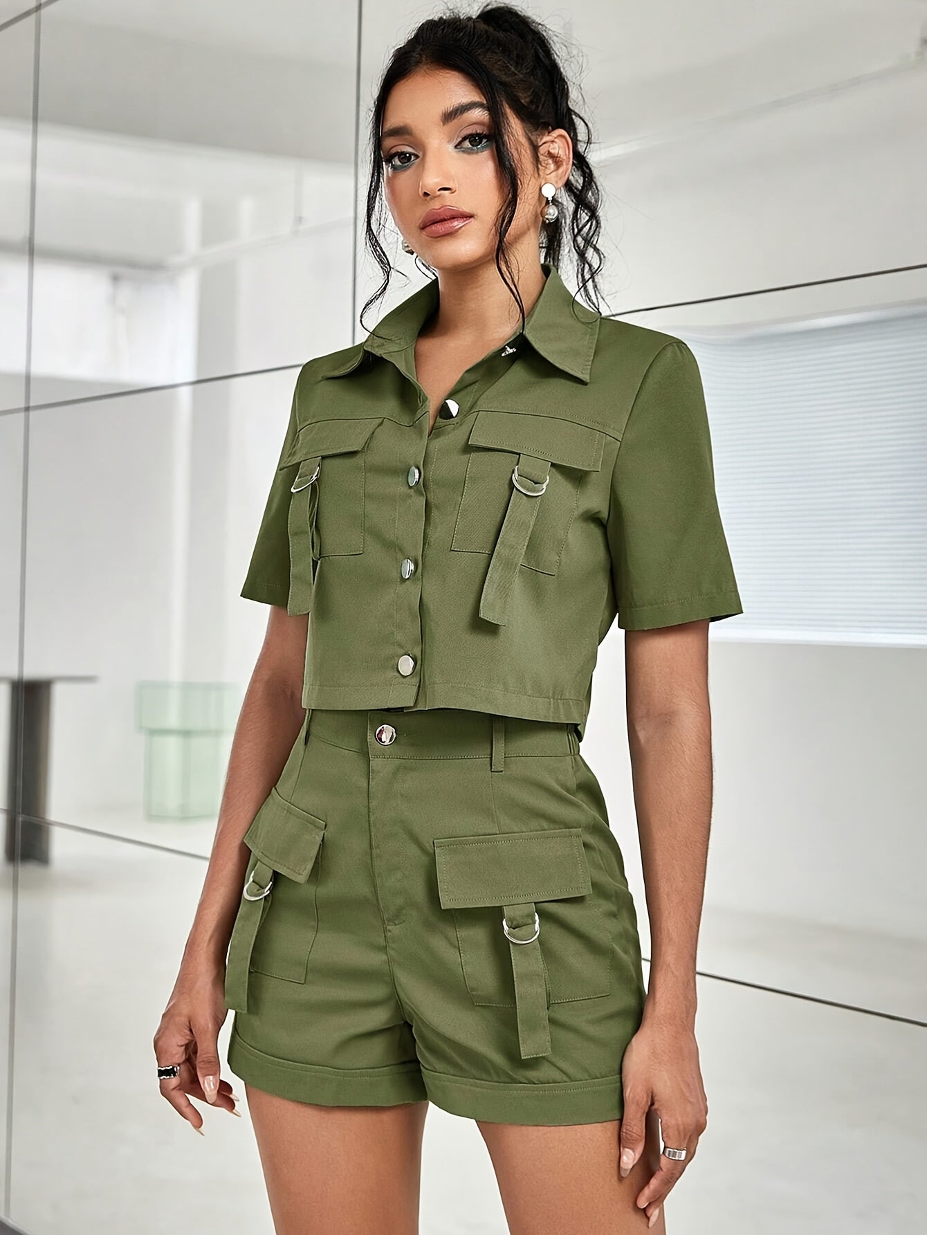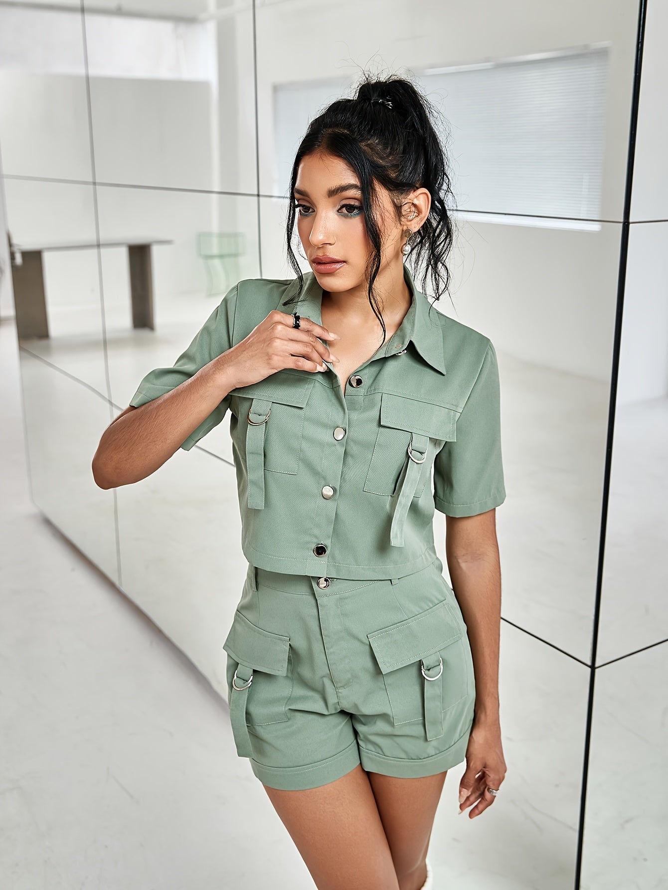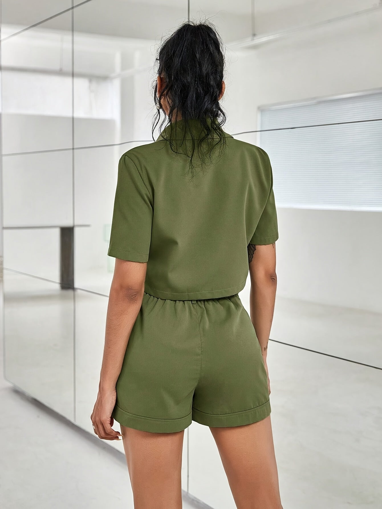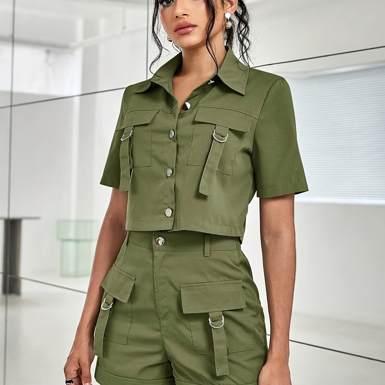 Zestaw Dorota składa się z klasycznego topu i spodni w jednolitym kolorze. Kieszeń dodaje praktyczności, a lekka tkanina sprawia, że komplet doskonale sprawdzi się przez cały rok.