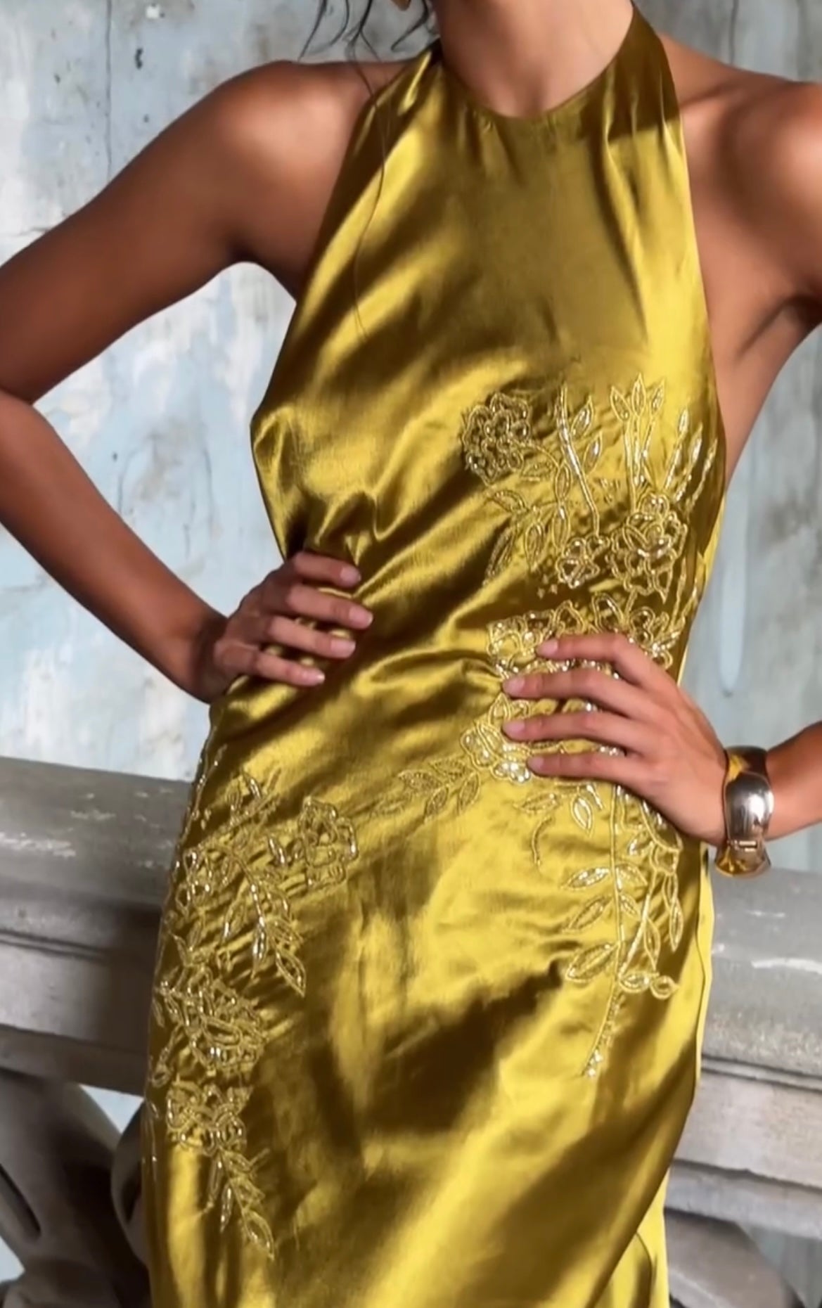 Elegancka, satynowa, haftowana sukienka z pasem — luksusowa i wyrafinowana propozycja, która łączy delikatność satyny z misternym haftem. Pasek podkreśla talię, modelując sylwetkę i dodając kobiecego wdzięku. Idealna na formalne wydarzenia, wesela i wieczorne przyjęcia, pozwala zabłysnąć elegancją i klasycznym stylem.