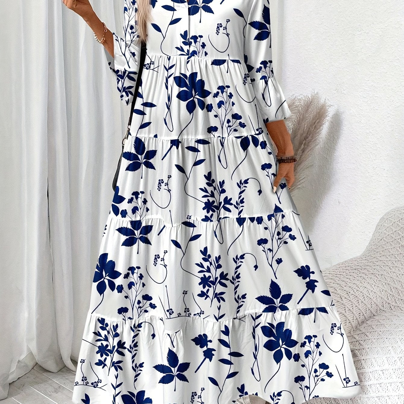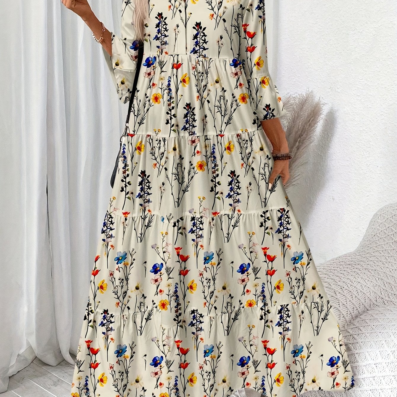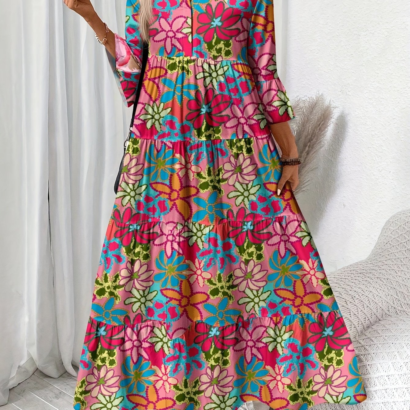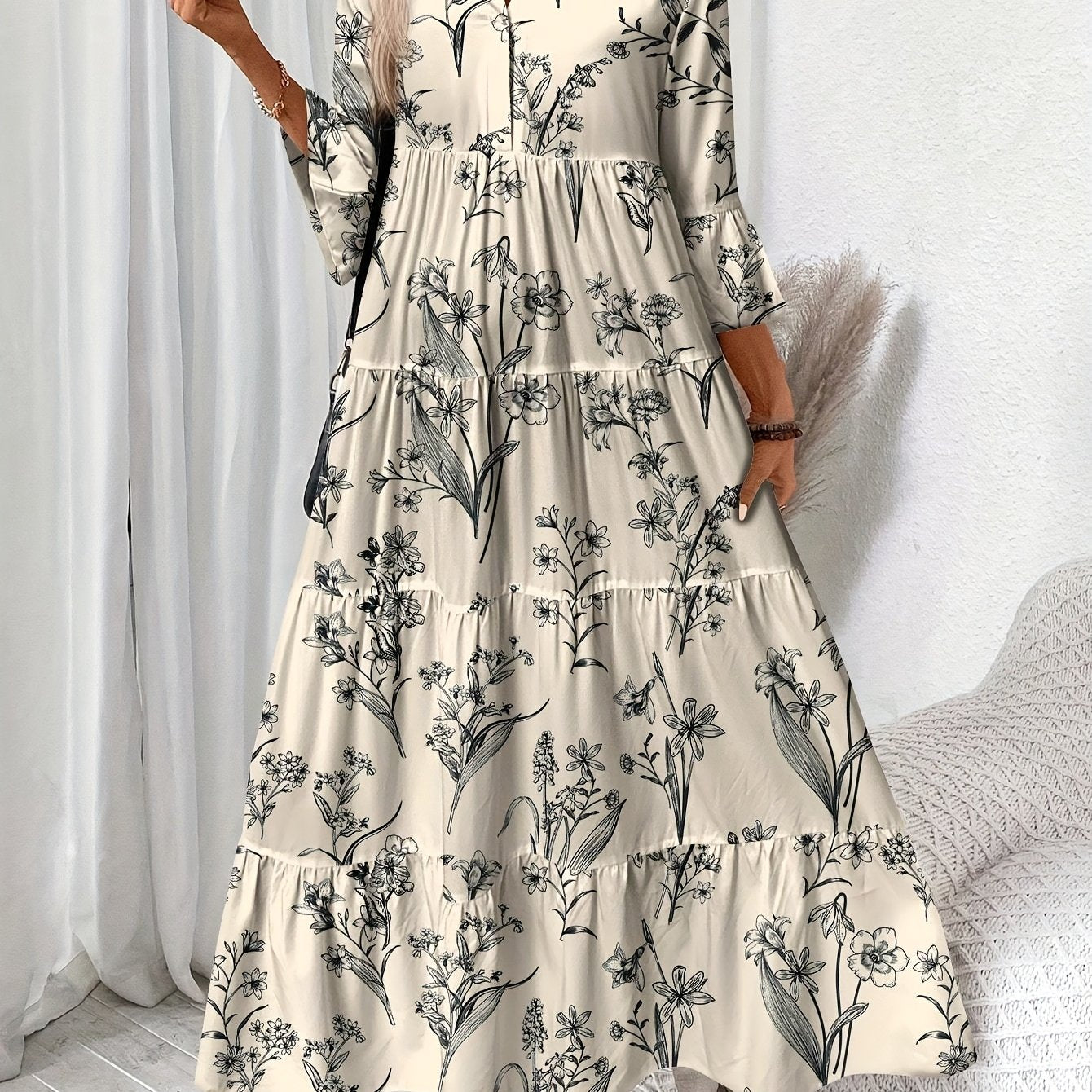 Sukienka Elżbieta to elegancka maxi z plisowanym fasonem i dekoltem w serek. Długi rękaw i detale guzików czynią ją uniwersalnym wyborem na każdą porę roku.
