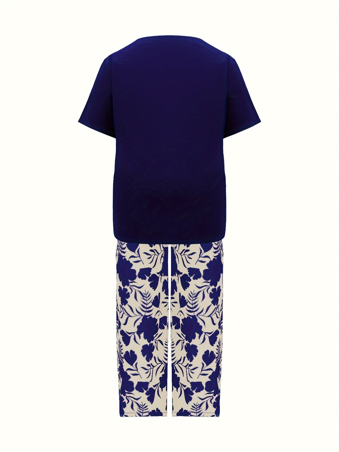 Europejski i amerykański styl w garniturze damskim plus size z nadrukiem. Dwuczęściowy komplet o eleganckim, ale swobodnym charakterze, idealny na lato. Komfortowa tkanina i modne wzornictwo sprawiają, że jest to doskonały wybór na codzienne stylizacje.