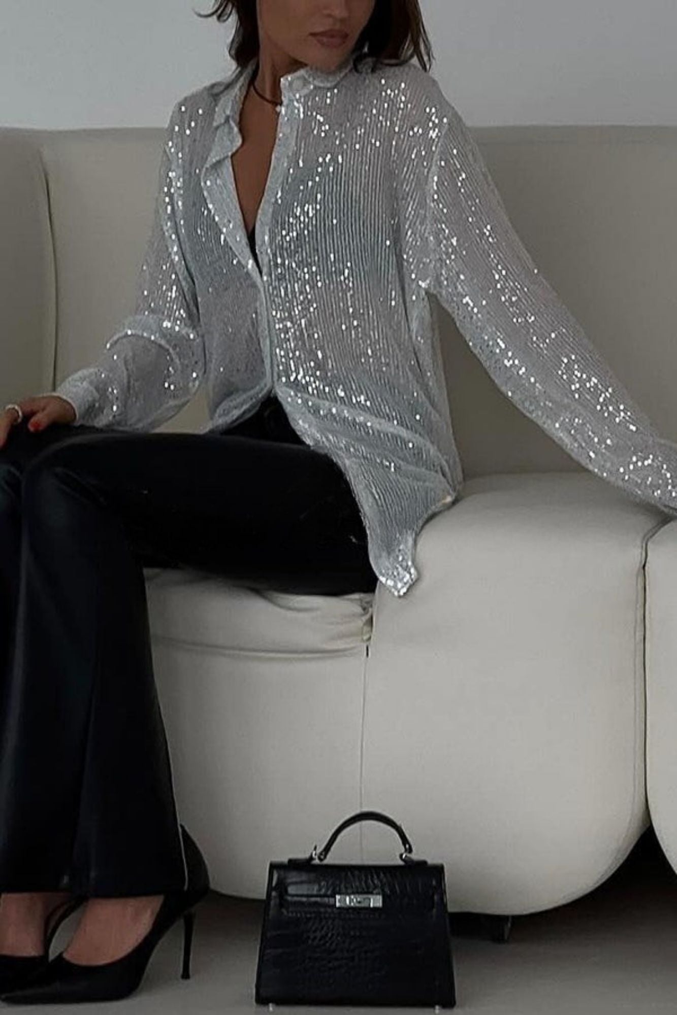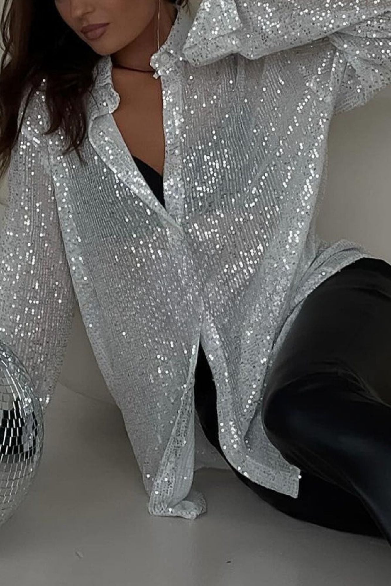 Garcelle – Siateczkowa Cekinowa Bluzka Bardot