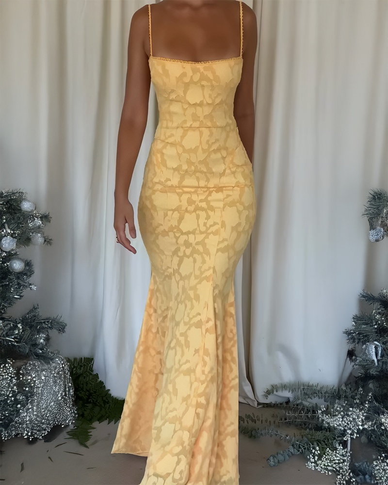 Modna, żółta, dopasowana sukienka na szelkach