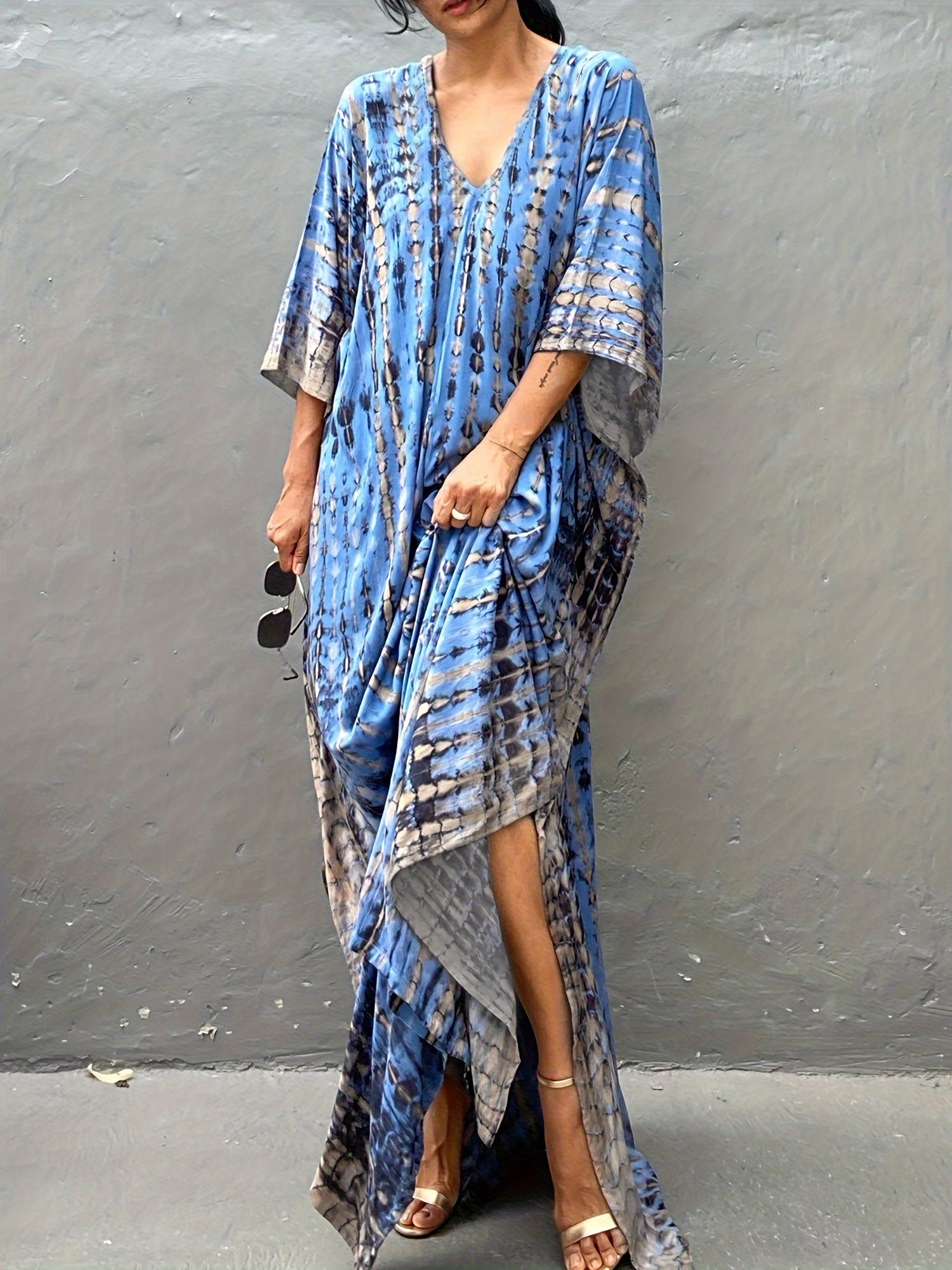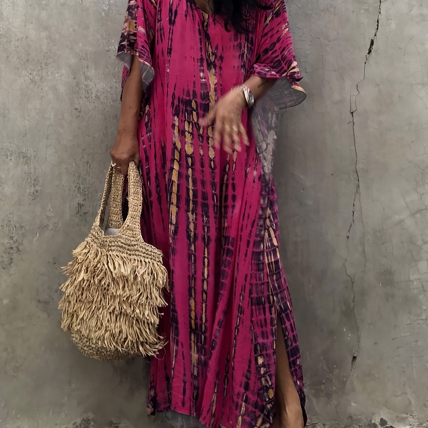Sukienka Faustyna to lekki kaftan plażowy o swobodnym kroju i paskowanych wzorach, idealna na wakacyjne dni nad wodą. Luźny fason i przewiewna tkanina zapewniają komfort nawet podczas upałów, a styl boho dodaje jej wyjątkowego uroku.