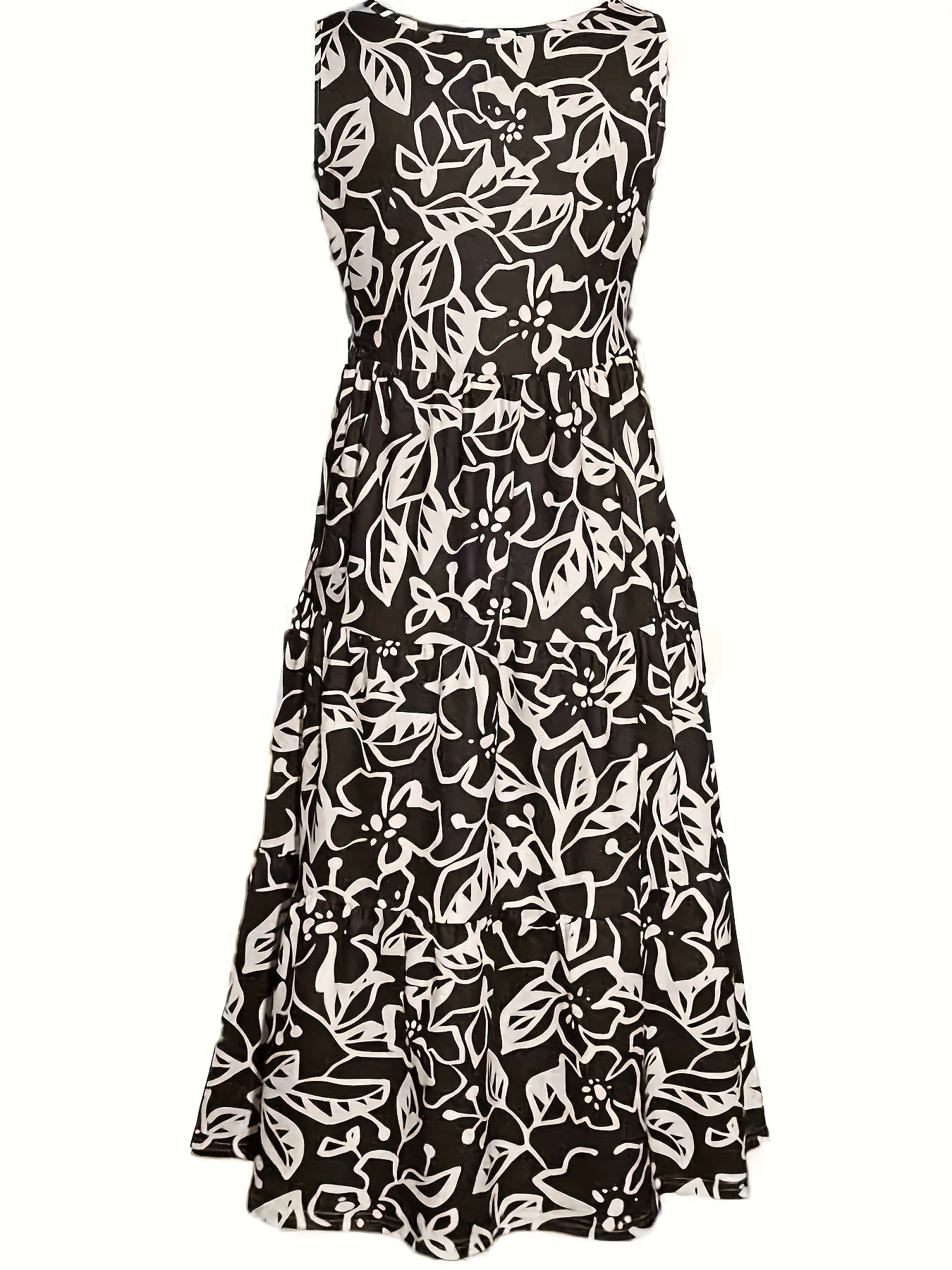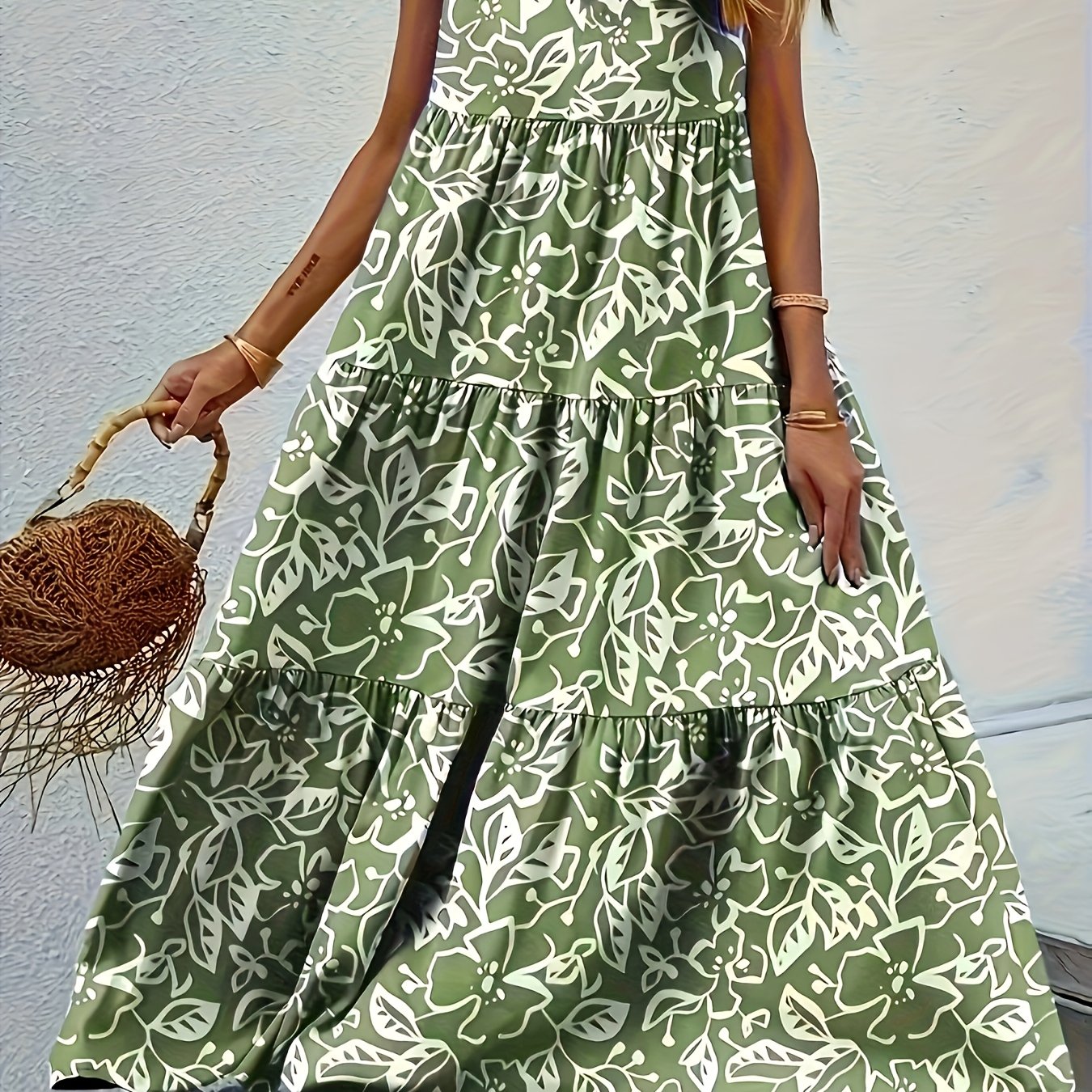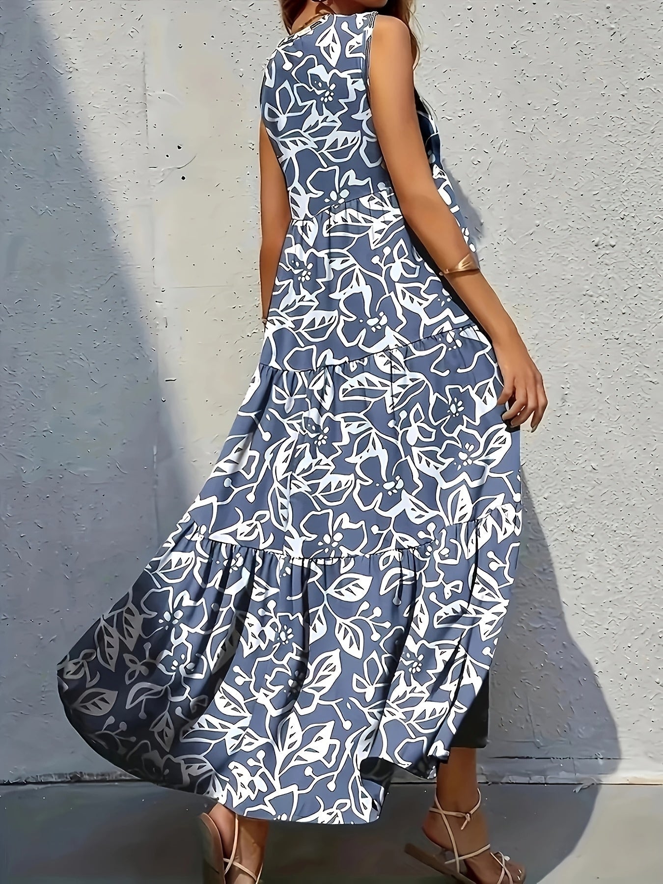 Sukienka Felicja to boho maxi z rozkloszowaną spódnicą i kwiatowym nadrukiem. Mikroelastyczny poliester i dekolt w serek tworzą komfortową, a zarazem elegancką stylizację.