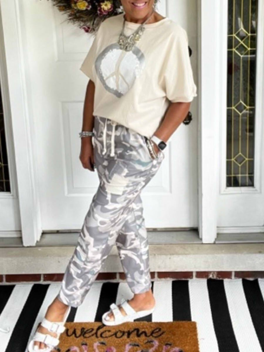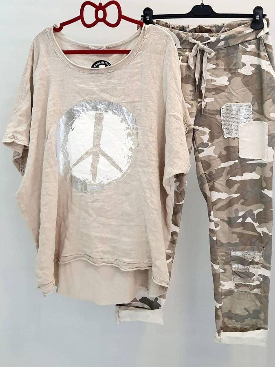 Damski, dwuczęściowy, swobodny garnitur w kamuflażu