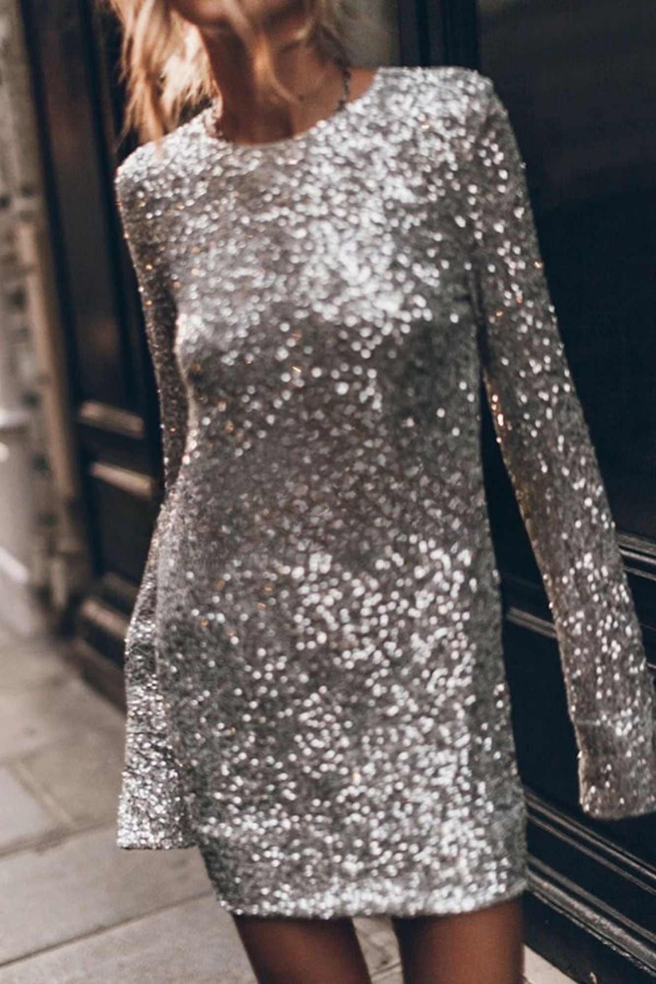 Skupienie Na Blasku – Cekinowa Mini Sukienka Z Rozciętymi Rękawami