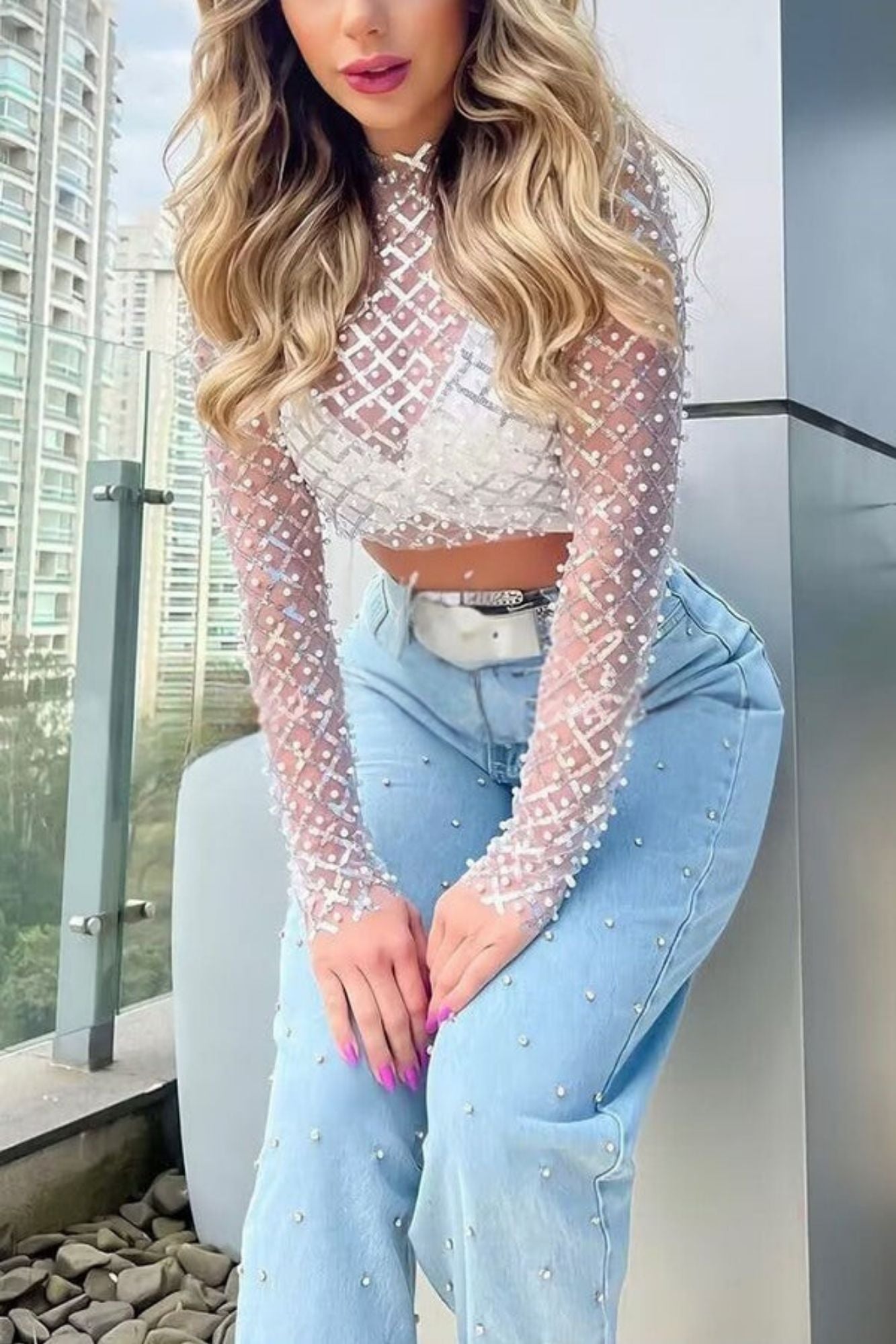 Bluzka Z Siateczki Z Geometrycznym Wzorem I Cekinami