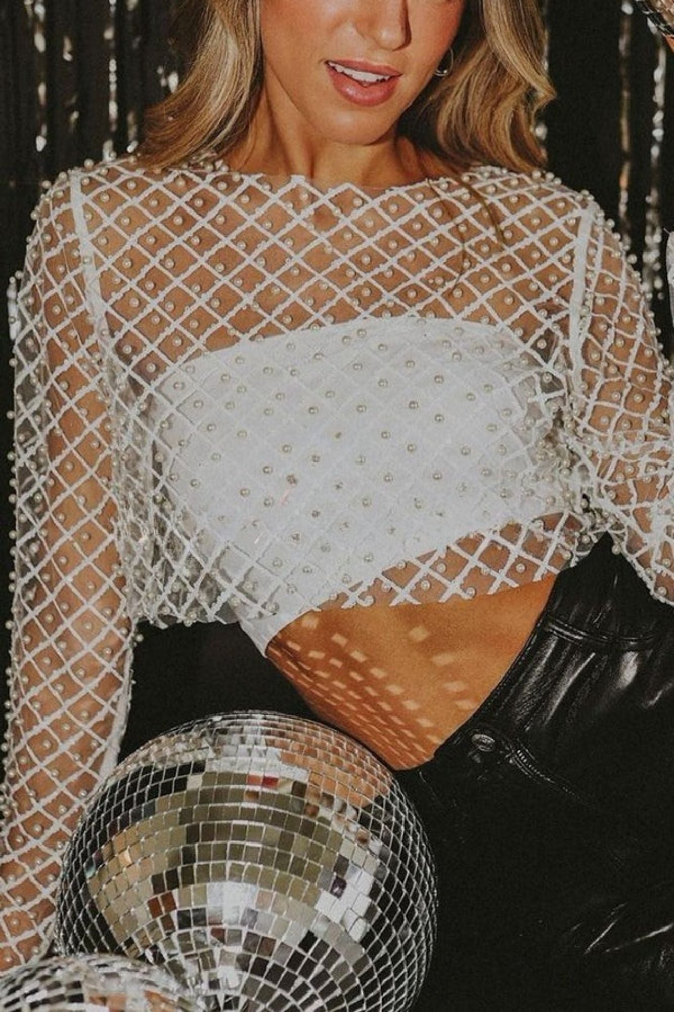 / Bluzka Z Siateczki Z Geometrycznym Wzorem I Cekinami