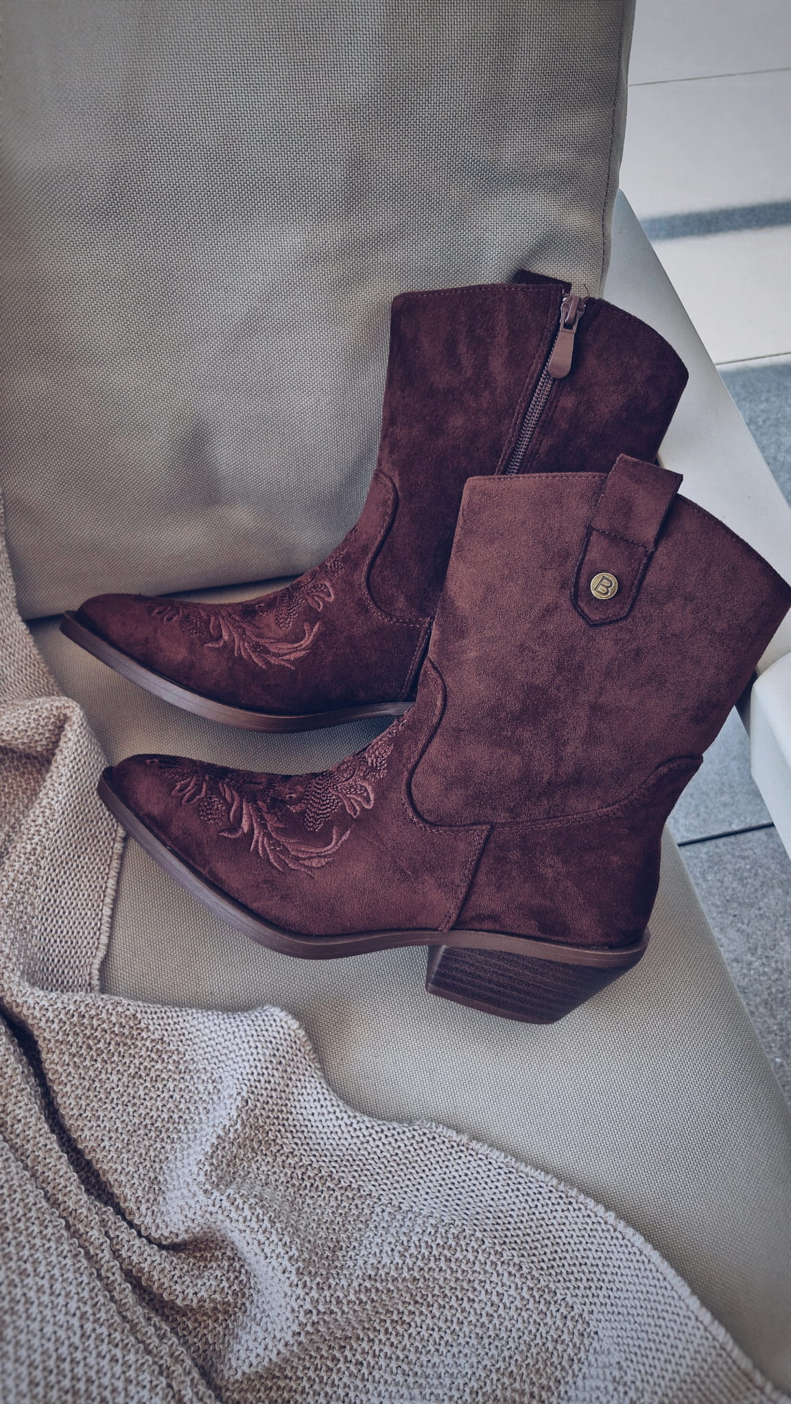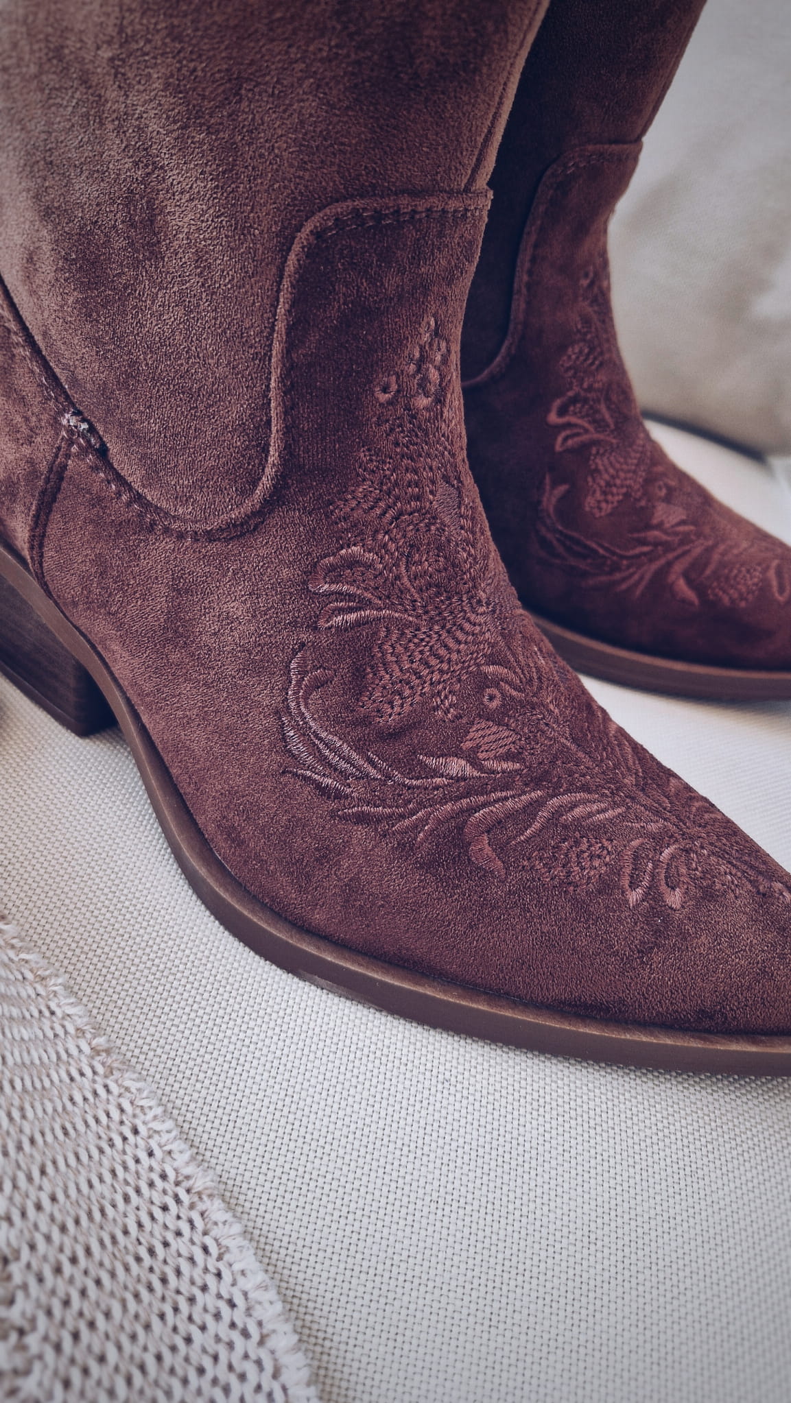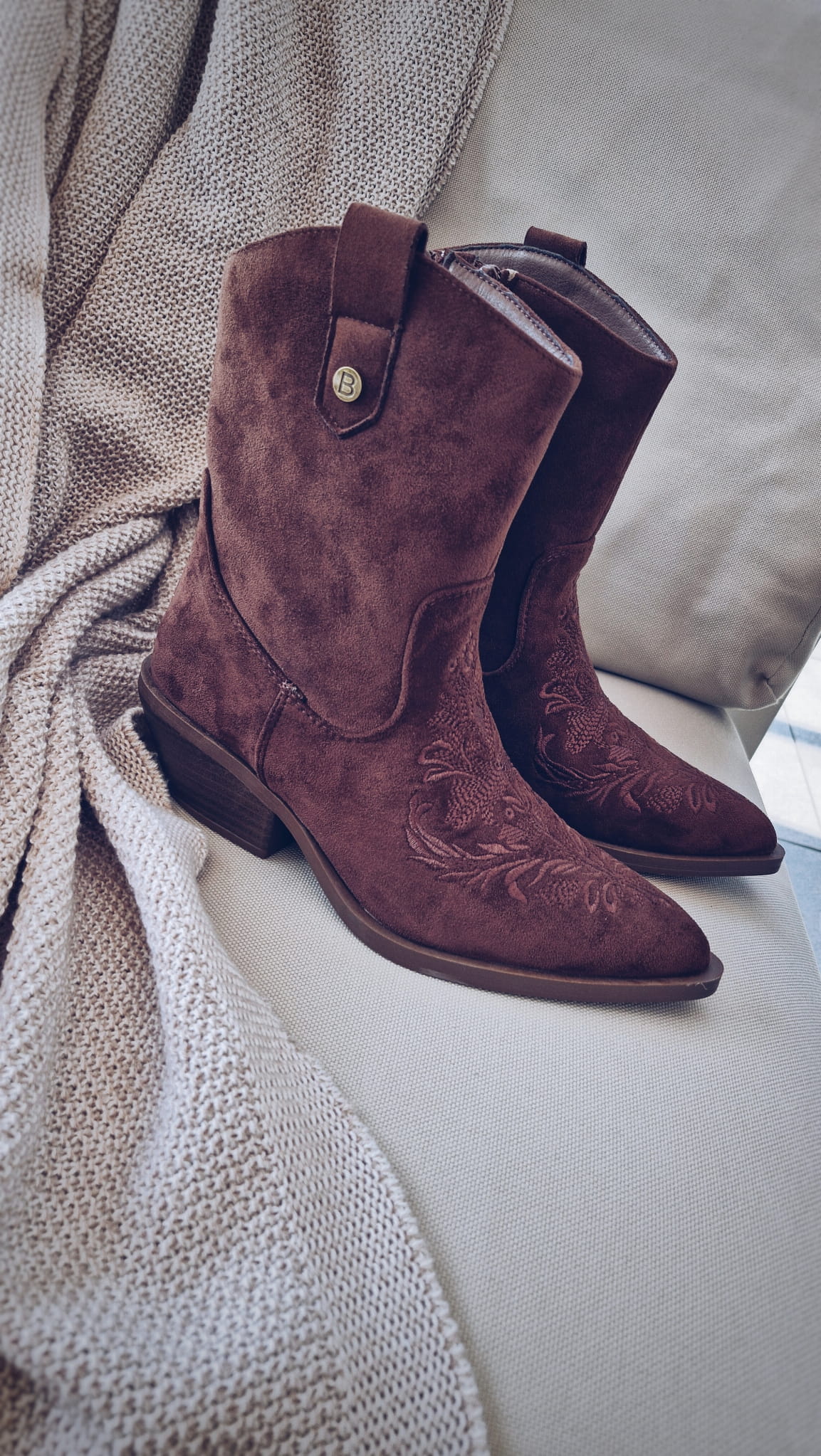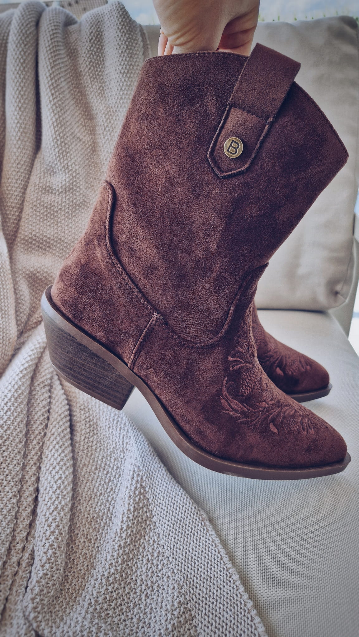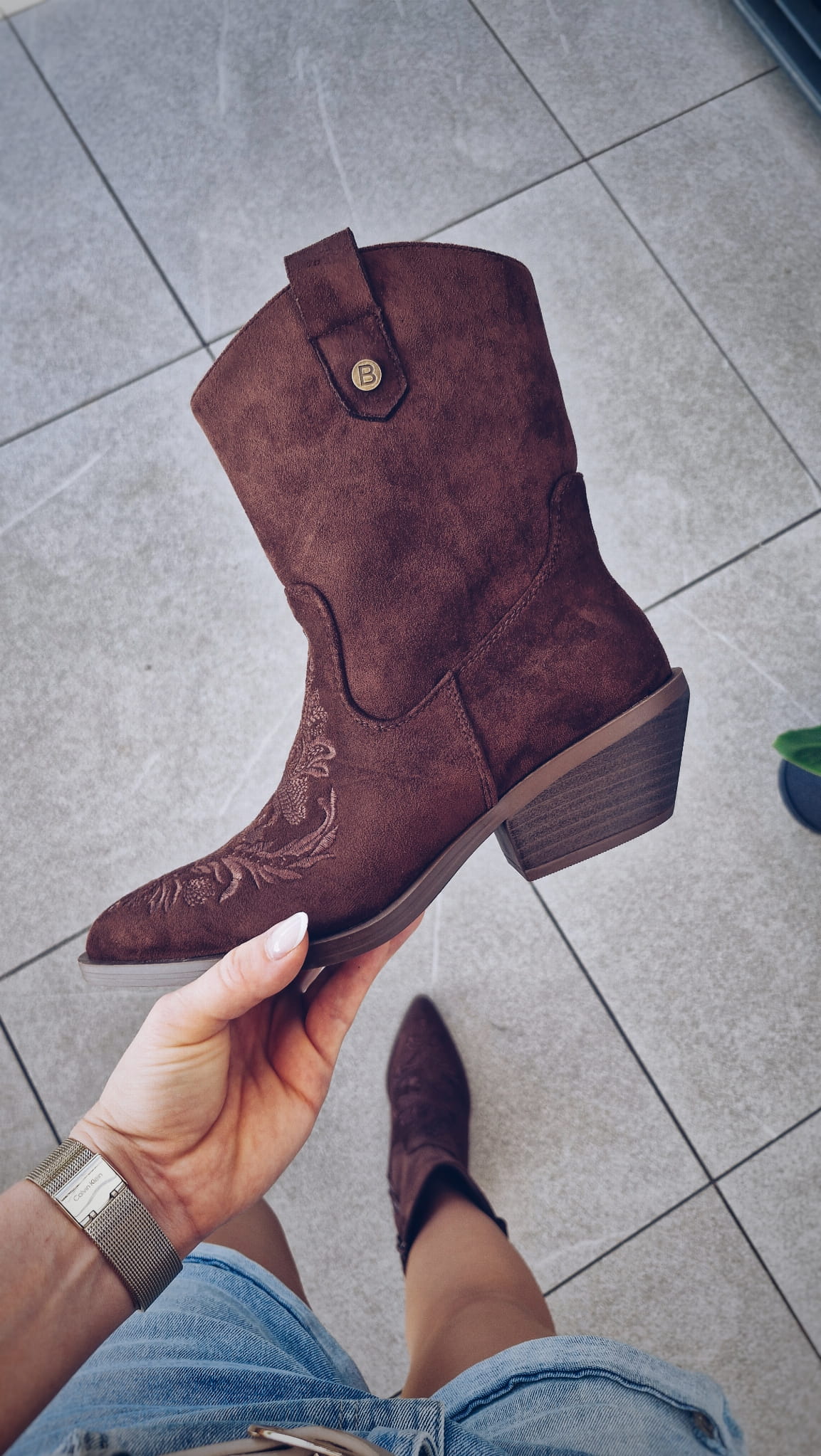 Grażusia z miękkiego eko zamszu w ciepłym odcieniu brązu,