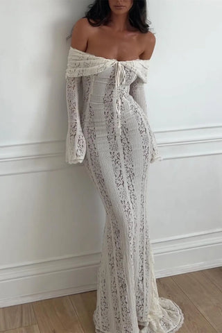 Postaw na ponadczasową elegancję z tą koronkową sukienką maxi z odkrytymi ramionami – idealnym wyborem na każdą formalną okazję.
