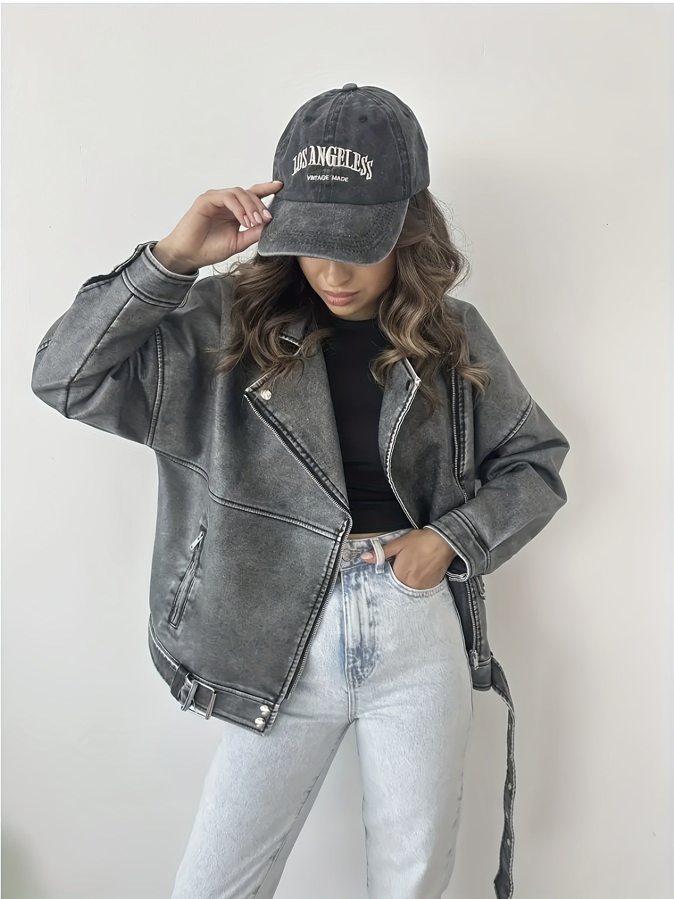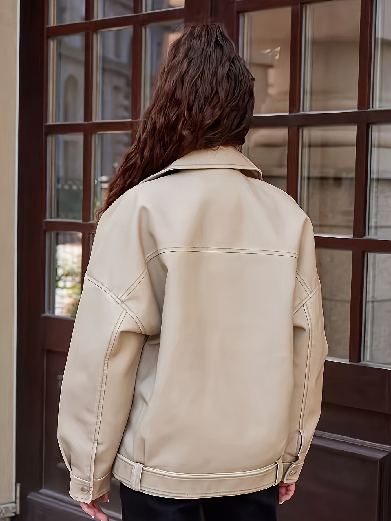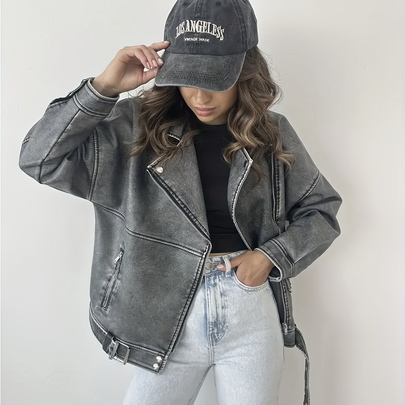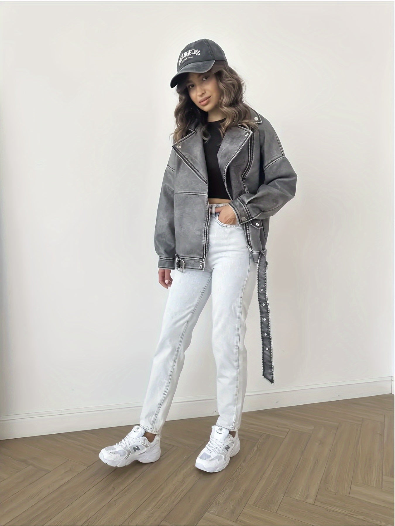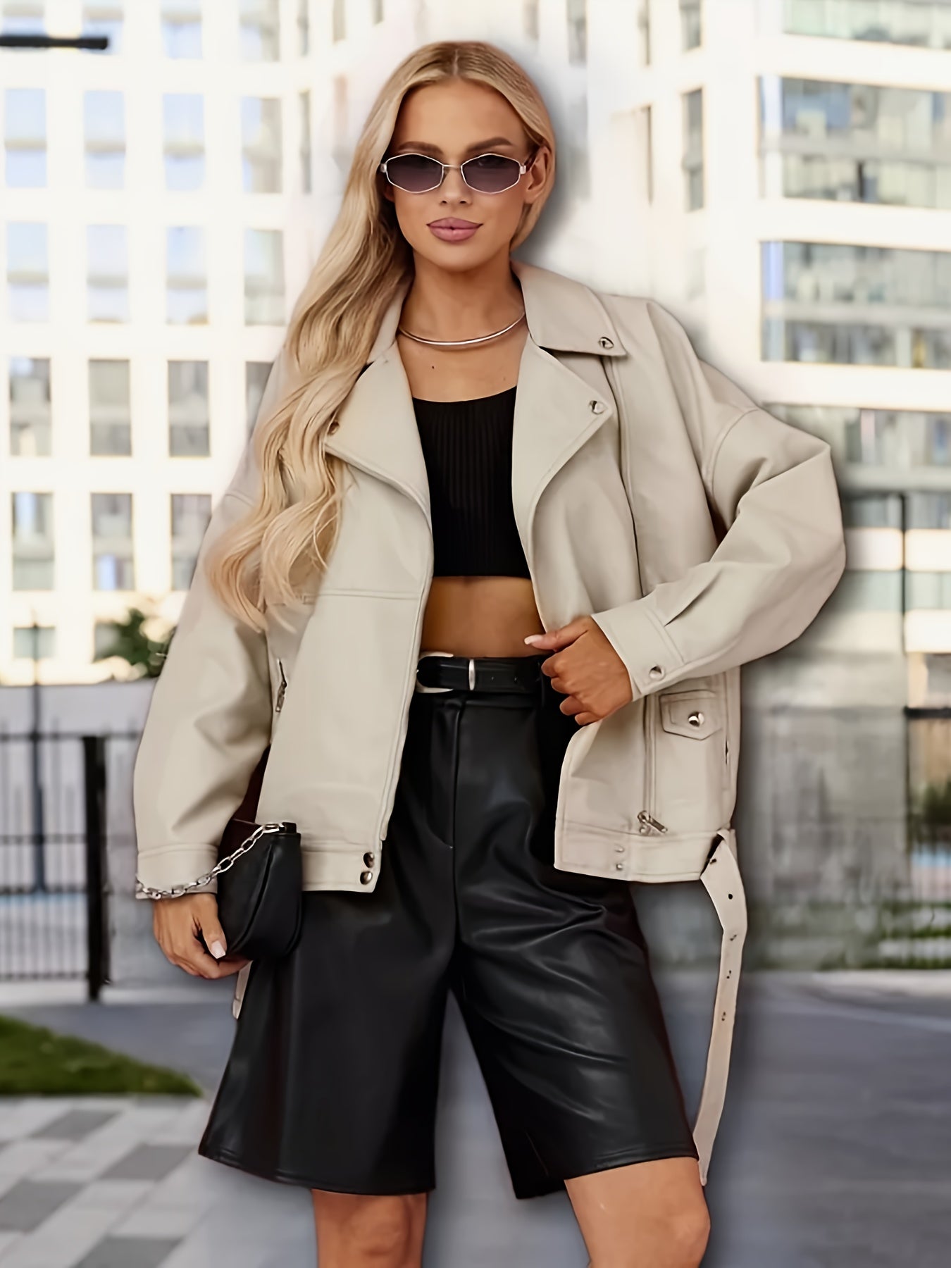 Skóra PU łączy trwałość z lekkością, a klasyczny design kurtki pozwala dopasować ją do różnych stylizacji – od casualowych po bardziej eleganckie.