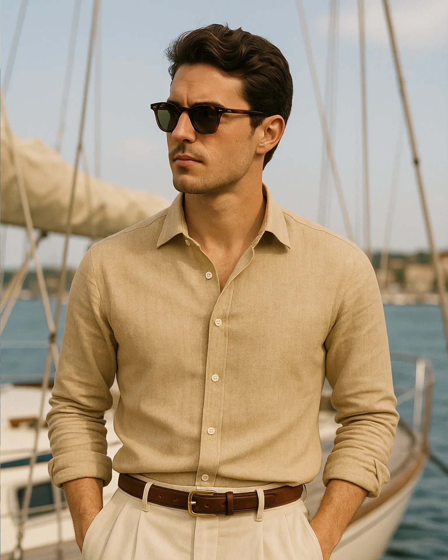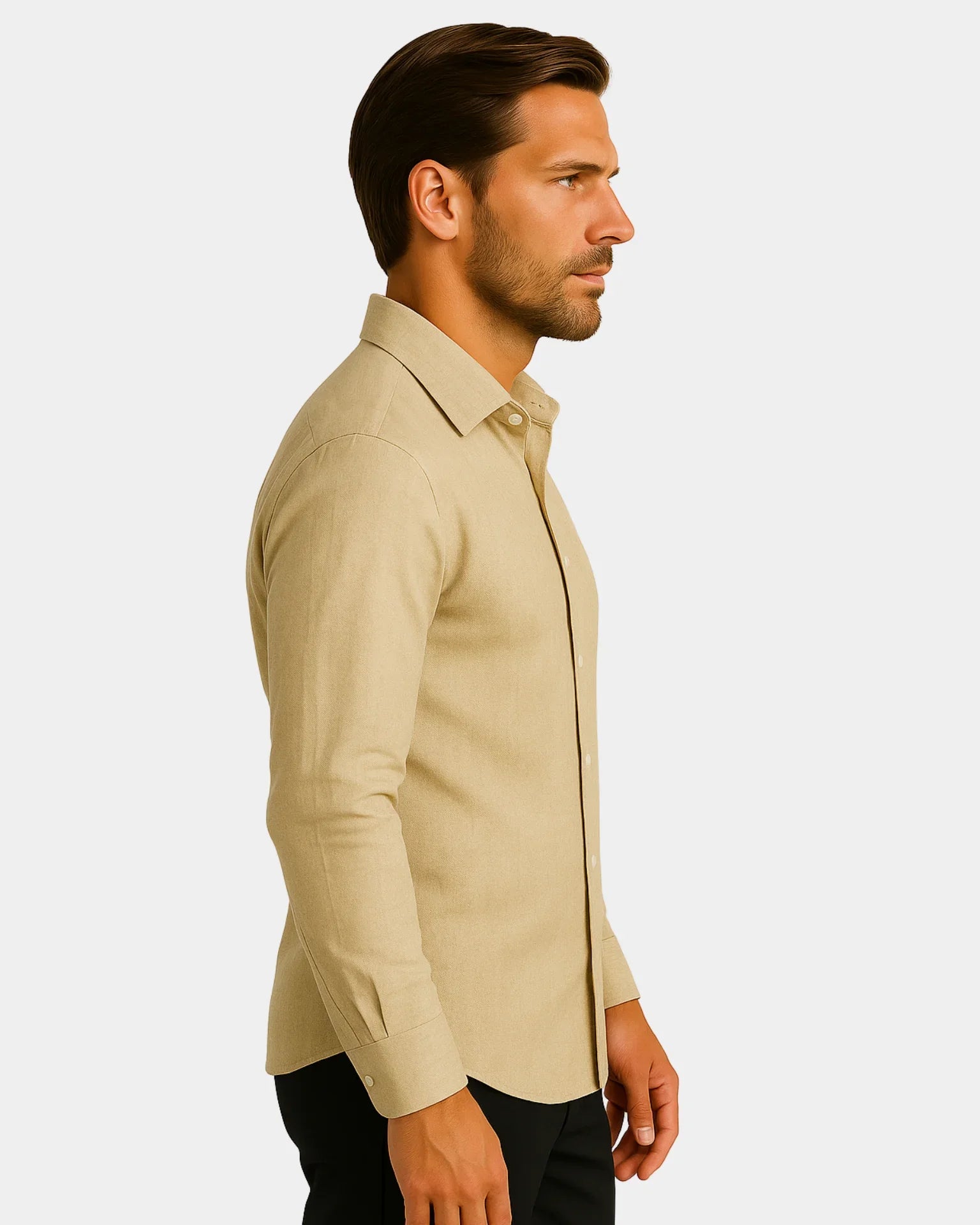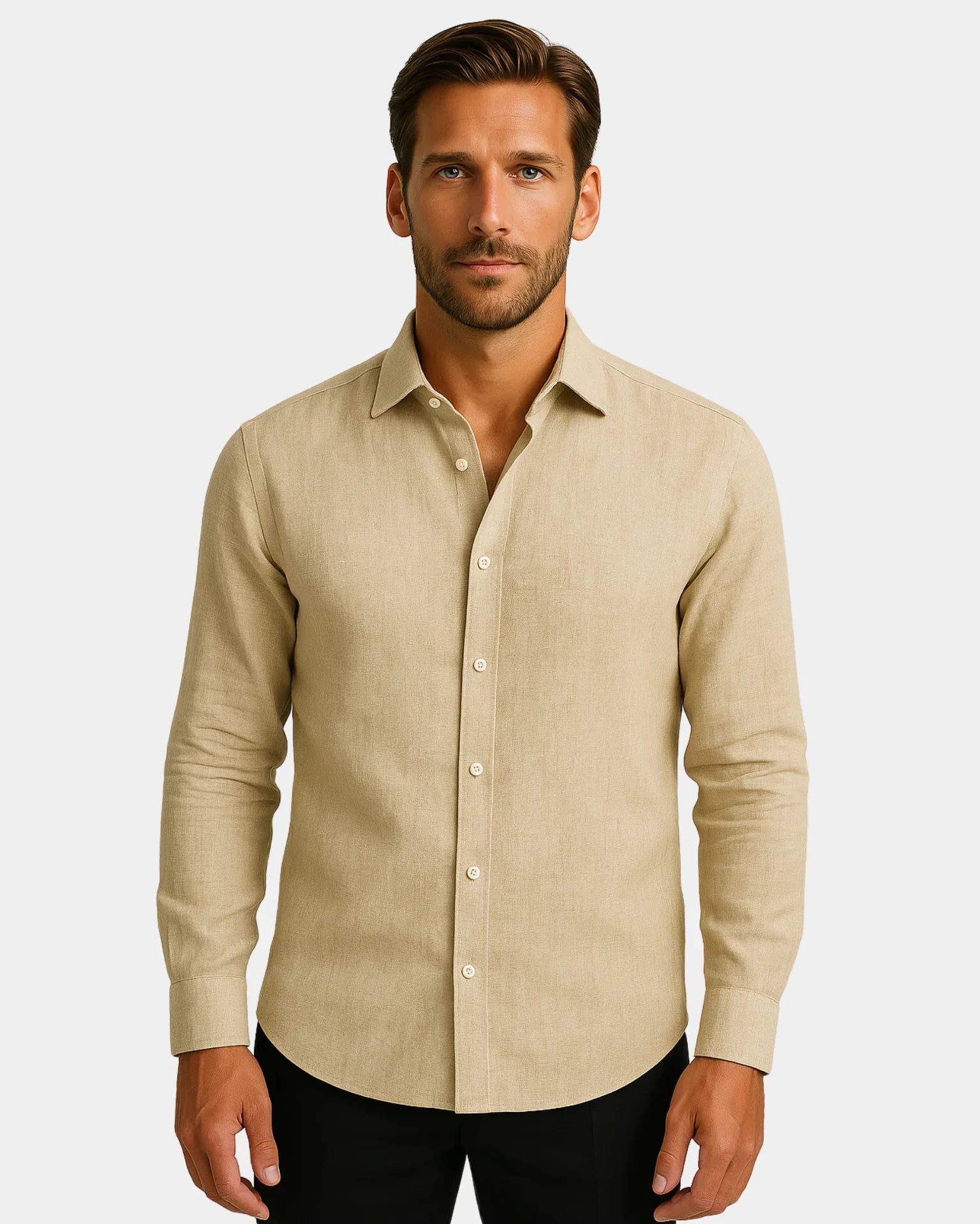 Zaprojektowana z eleganckim kołnierzykiem, wzmocnionymi szwami i naturalnymi guzikami z muszli, koszula Jan - Koszula z Lnu łączy wyrafinowaną strukturę z swobodnym luksusem — to niezbędny element każdej dopracowanej garderoby.