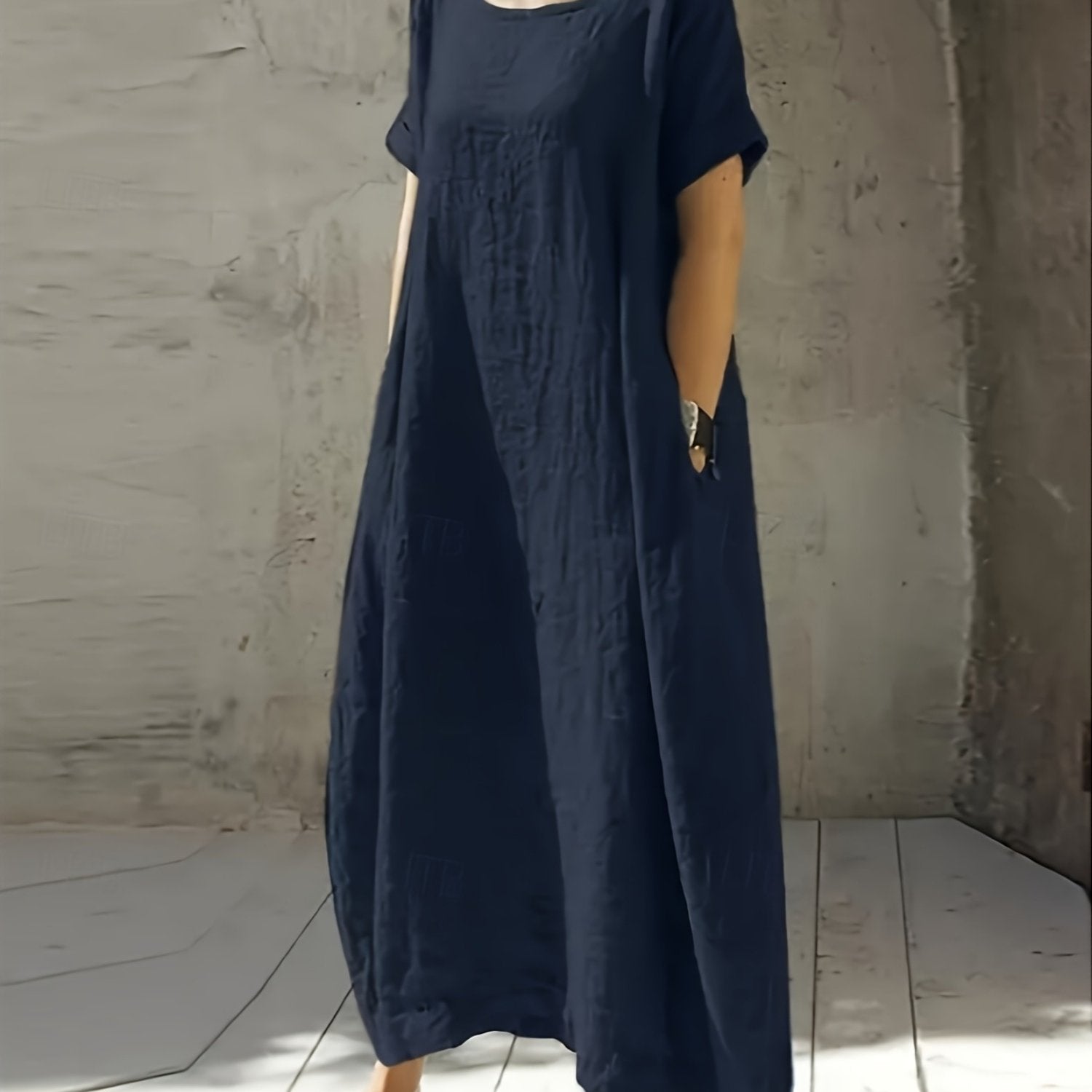 Sukienka Jolanta to luźna maxi z kieszeniami i okrągłym dekoltem, idealna na wakacje. Jednolity kolor i lekka tkanina czynią ją wygodną i praktyczną na letnie spacery i codzienne stylizacje.