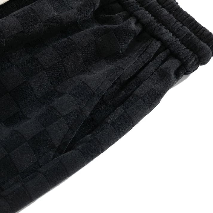 Elegancki wzór w kratkę : Wzór w kratkę w tej samej tonacji dodaje eleganckiego akcentu, dzięki czemu spodnie dresowe idealnie nadają się zarówno na relaksujące, jak i niezobowiązujące wyjścia.