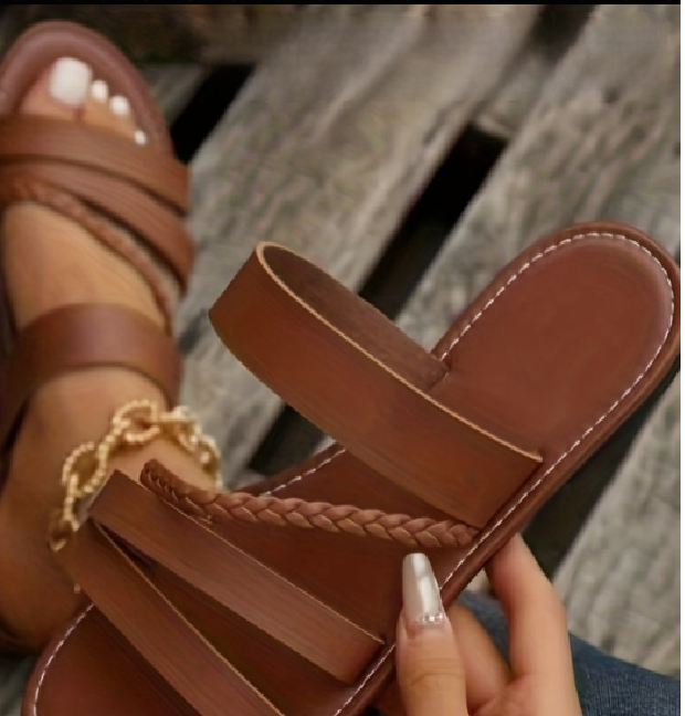 Kasztina to sandały z plecioną podeszwą w kasztanowym odcieniu, które wyróżniają się letnim charakterem. Sztuczna cholewka i podeszwa PU gwarantują wygodę i trwałość. Ich odkryte palce dodają przewiewności, a wsuwany design ułatwia zakładanie. Doskonałe na plażę i codzienne spacery.