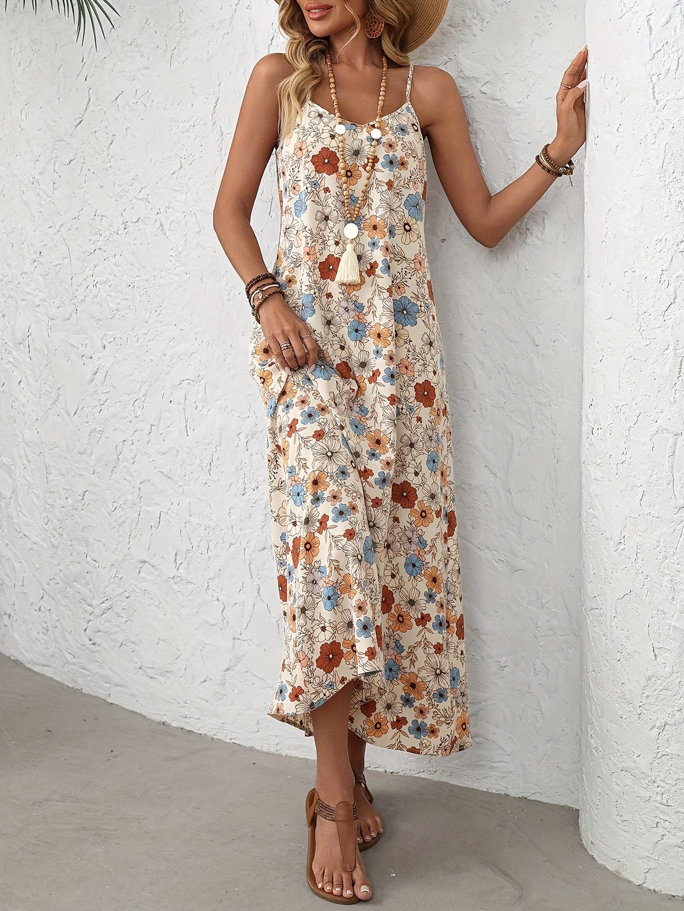 Sukienka łączy wygodę i kobiecy styl, pasując zarówno na plażę, jak i na spotkania towarzyskie.