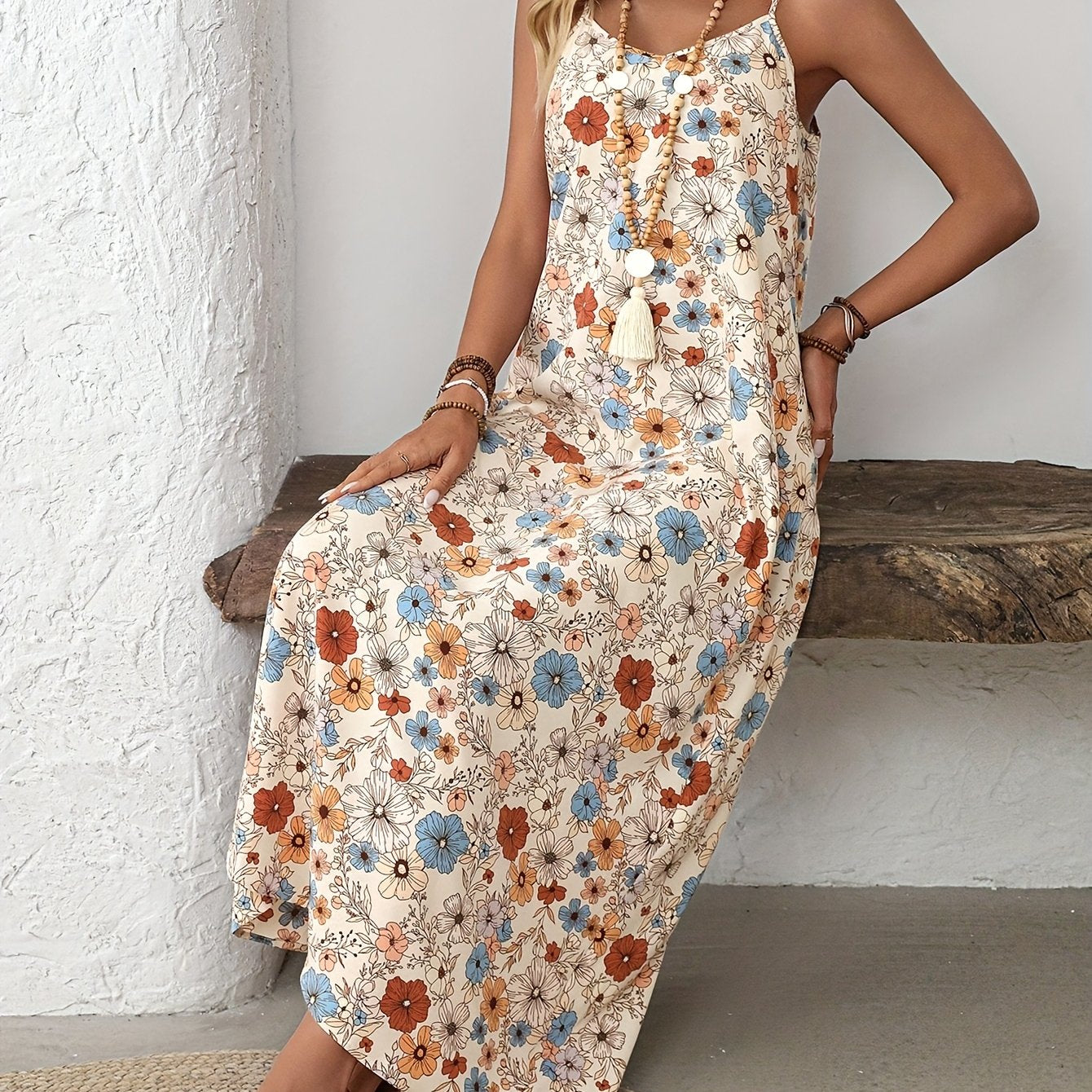 Klaudia – Długa Sukienka Z Kwiatowym Nadrukiem