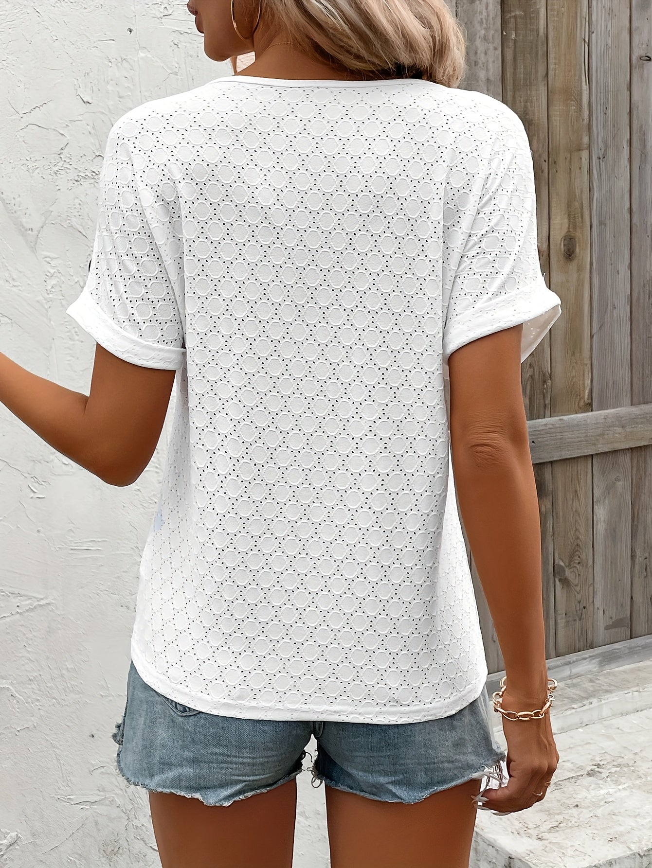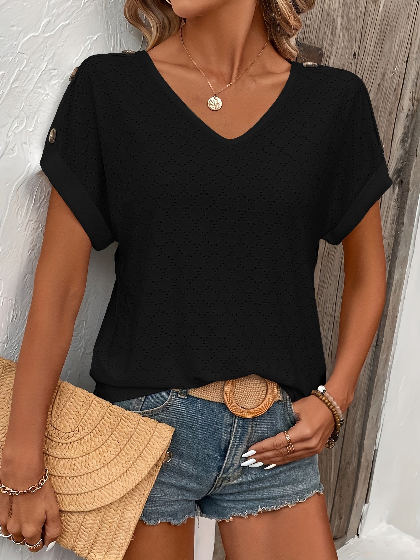 Koszula z krótkim rękawem typu batwing, ozdobiona wstążkowym żakardem. Wyjątkowa faktura i swobodny krój sprawiają, że wyróżnia się w każdej stylizacji. Idealna na letnie dni i wyjątkowe okazje.